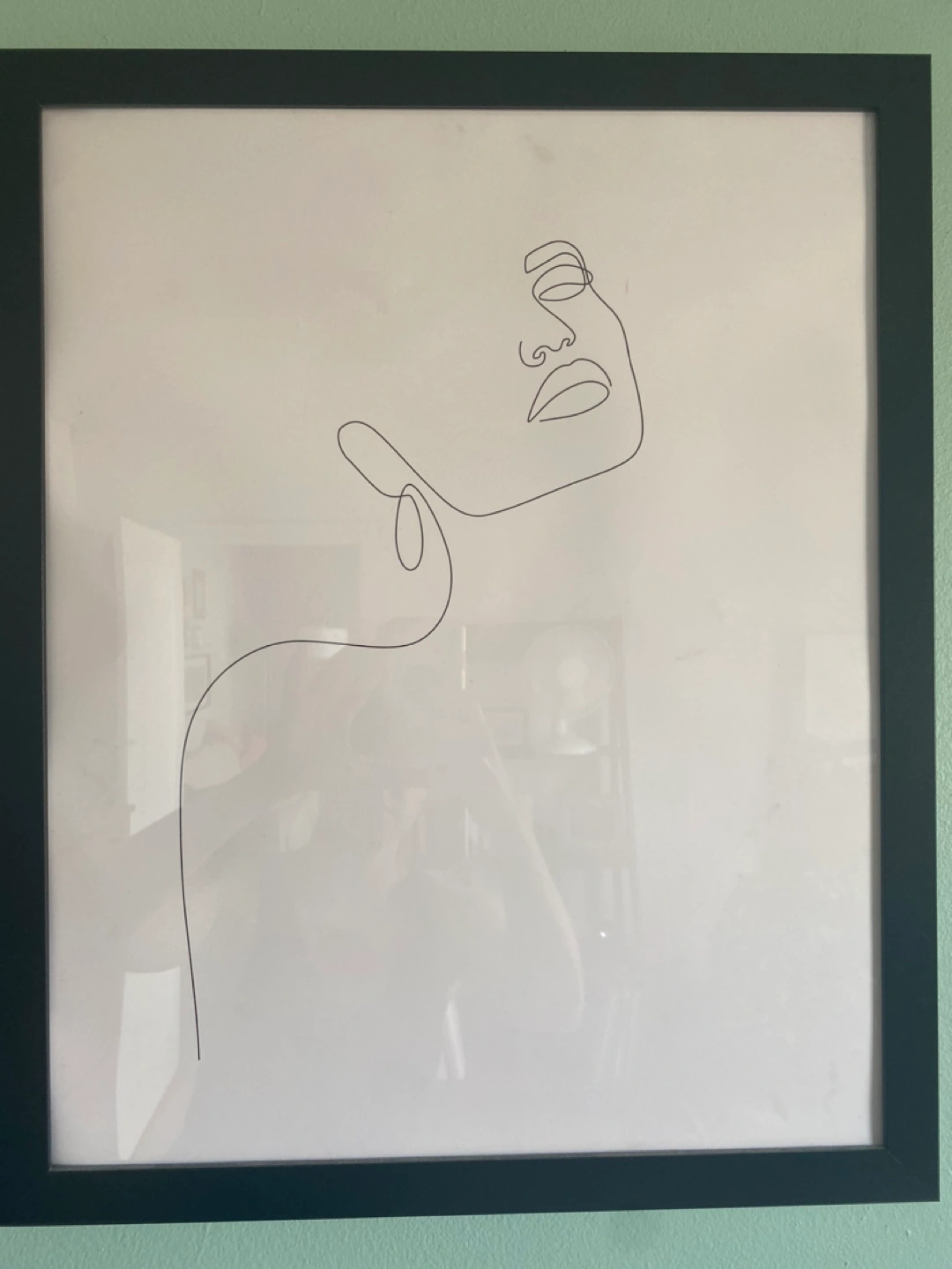 Minimalist line art originally purchased from Urban Outfitters. Frame is Ikea. Frame size is 21x17.