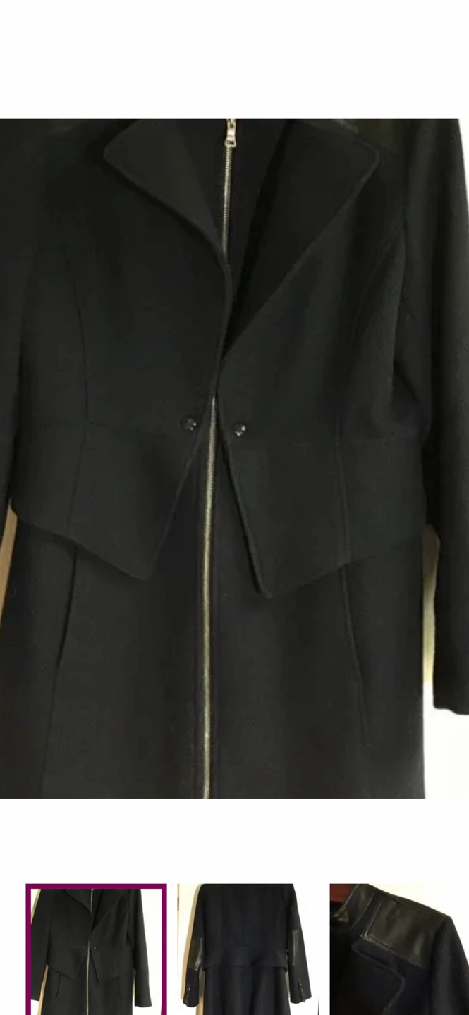 1000+Navy dark blue guess jacket A classic, chic wool coat with leather accents. The coat has a zip front closure and is fully lined. It features a leather trim on the collar, cuffs, in perfect condition