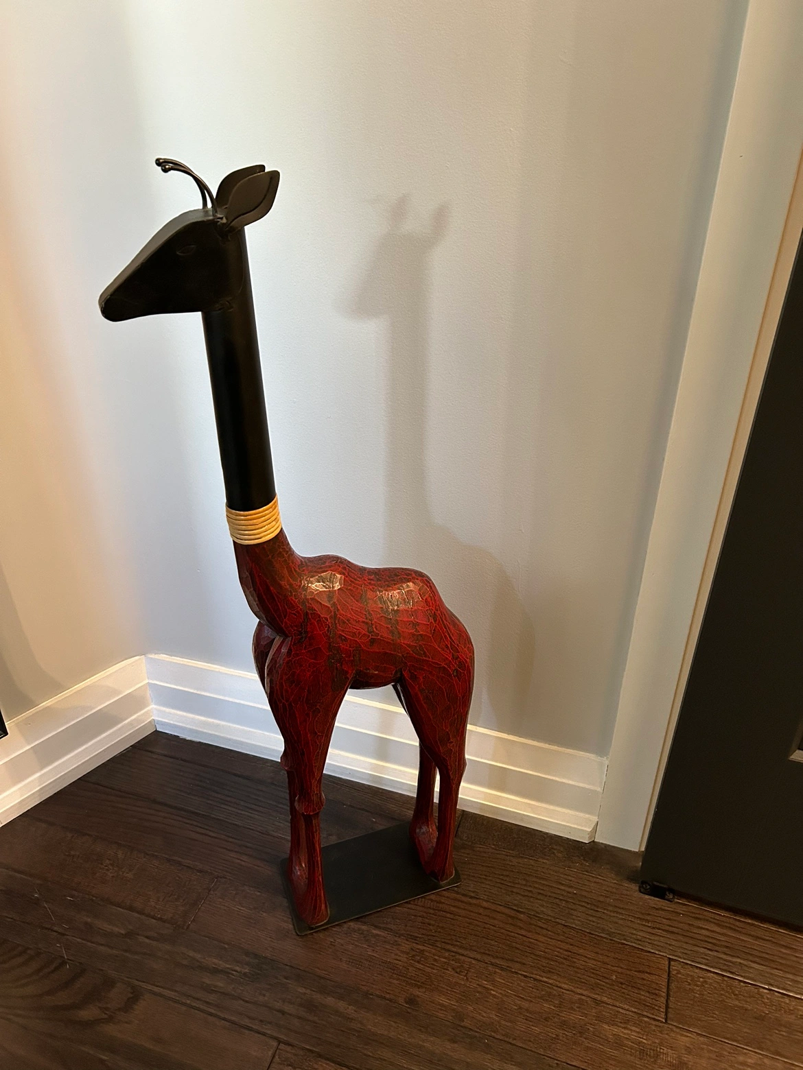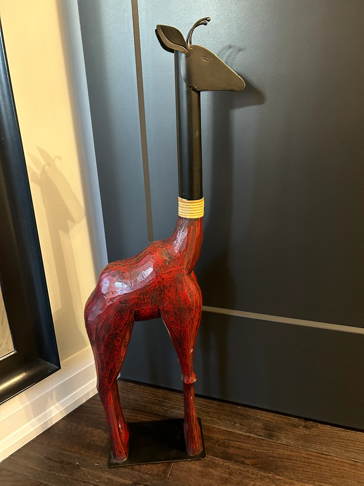 Giraffe statue made of wood and metal. Stands 3 feet tall. A great decorative piece for a home, office, or business. Pick up at Islington and Albion - Etobicoke.