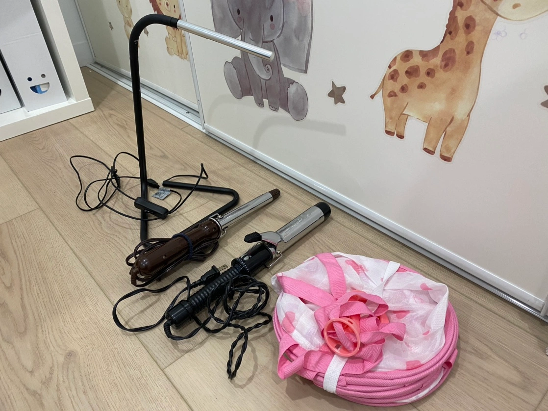 77All working well and in great condition for next person to use. The drying rack is brand new never used it. This package including a desk lamp, curling iron x 2 and a clothes drying rack. Total only for $15