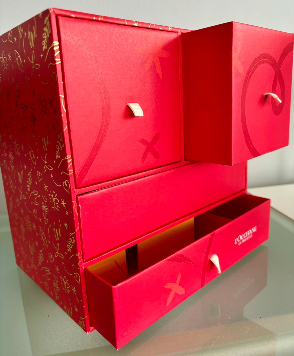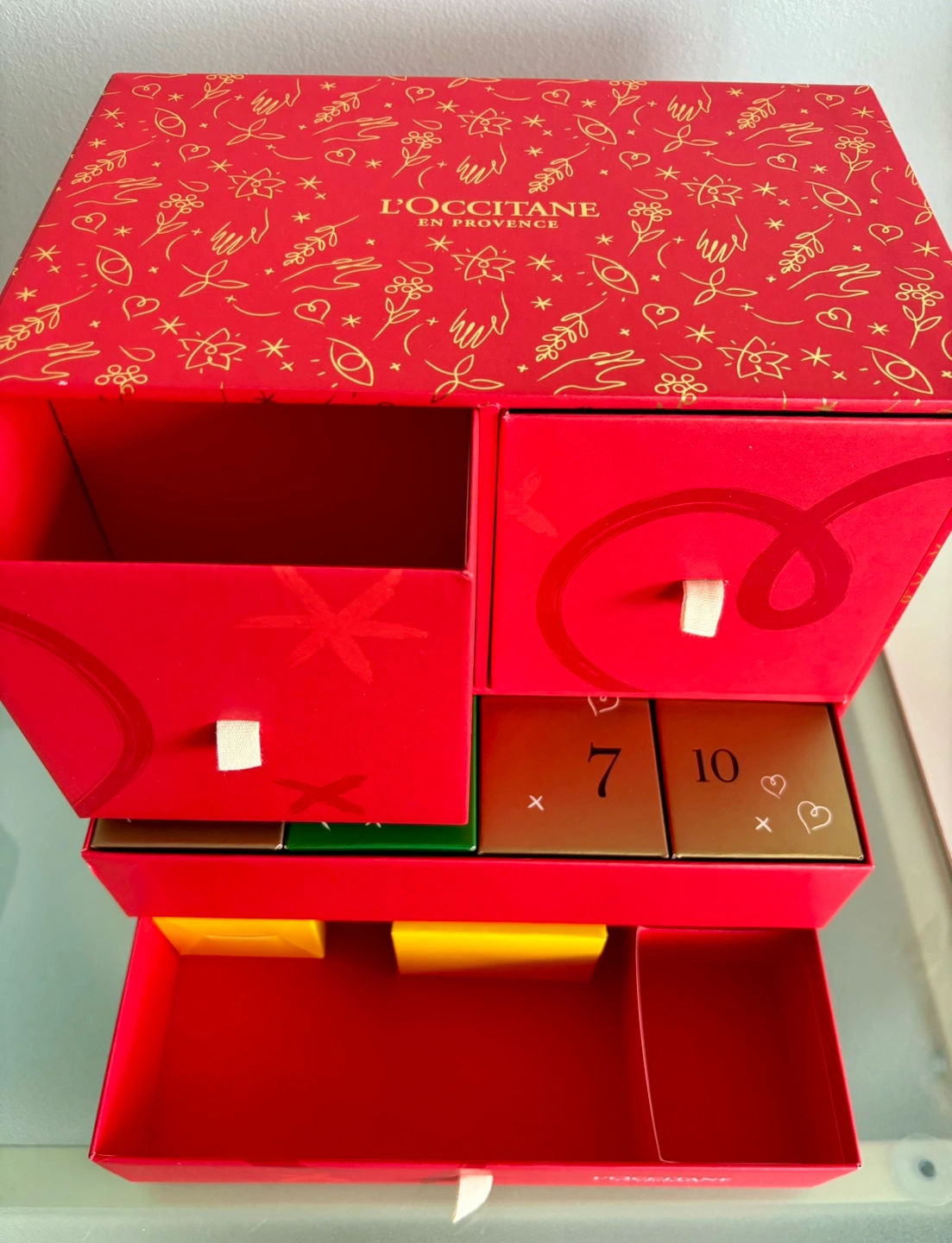 1000+Red gift box with drawers and compartments. Perfect for storing small items or giving as a gift. Box is empty and never used. About 9 1/2”L x 9 1/2” H x 6” D. Click on my name above to see my other listings and pickup locations.