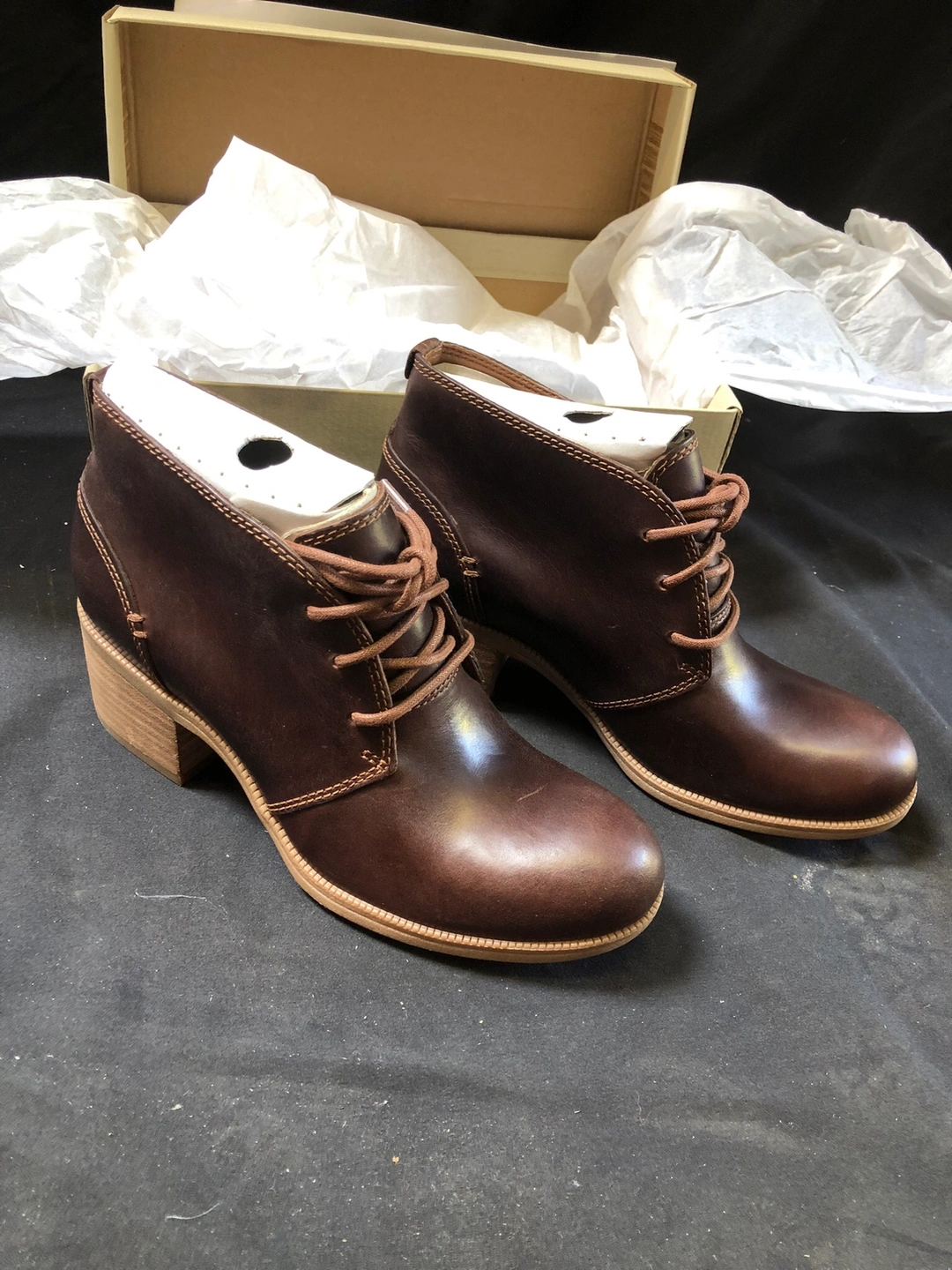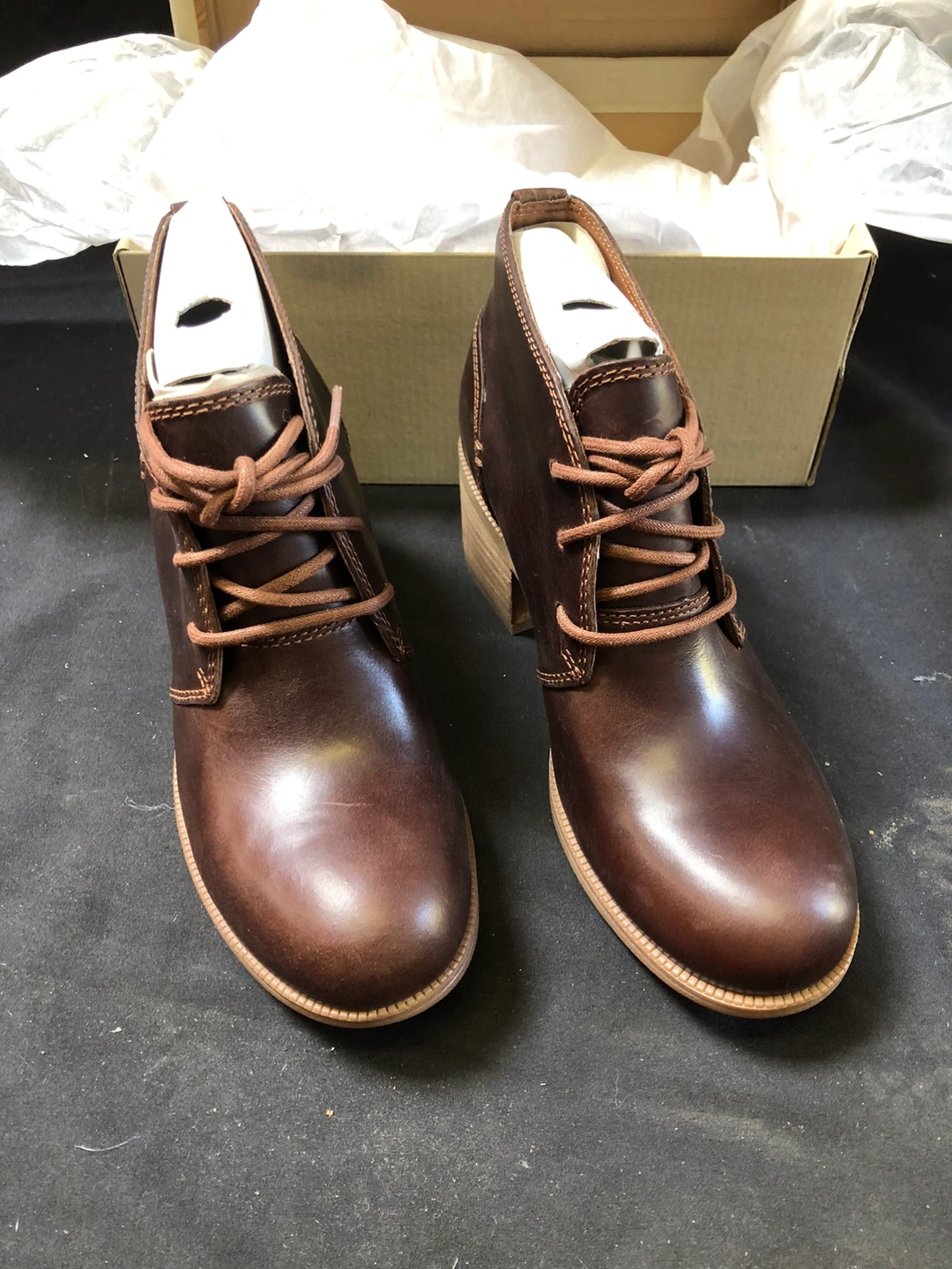 1000+New in box Clark’s Brown leather ankle boots with laces, ladies size 7 $15 Pick up Victoria Park & O’Connor area