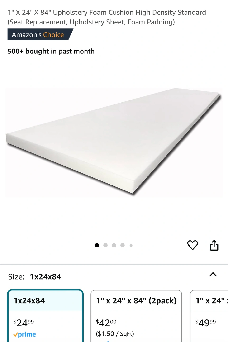 (Look at all the pictures. There are detailed sizes.) This is the perfect new product I've never taken out since I bought it on Amazon. It costs $5. (Cash only) (You have to come pick it up yourself) FoamTouch Upholstery Foam - High Density 1" x 24" x 84" - New - Made in USA - Rolled