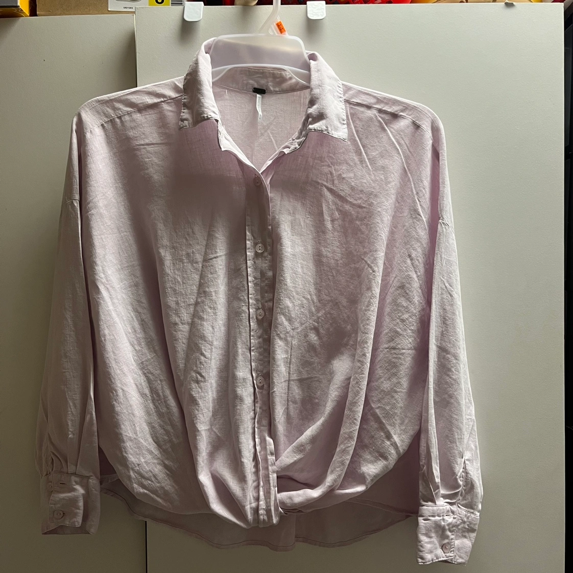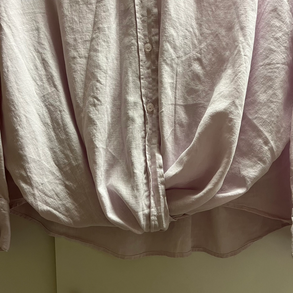 Young Fabulous and Broke YFB Linen Blend Twist Knot Button Front Shirt Size medium on tag. Color powder pink.
