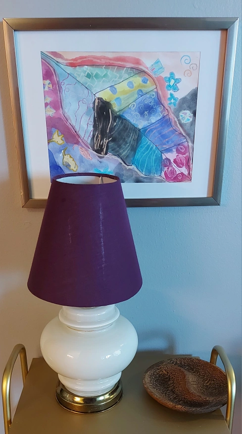 1000+A beautiful and unique table lamp with a white glass base and a purple fabric shade. It would be a great addition to any room. The shade is removable. 40cm height. Pick up only Pet free and smoke free household Yonge and Eglinton area Only cash payment