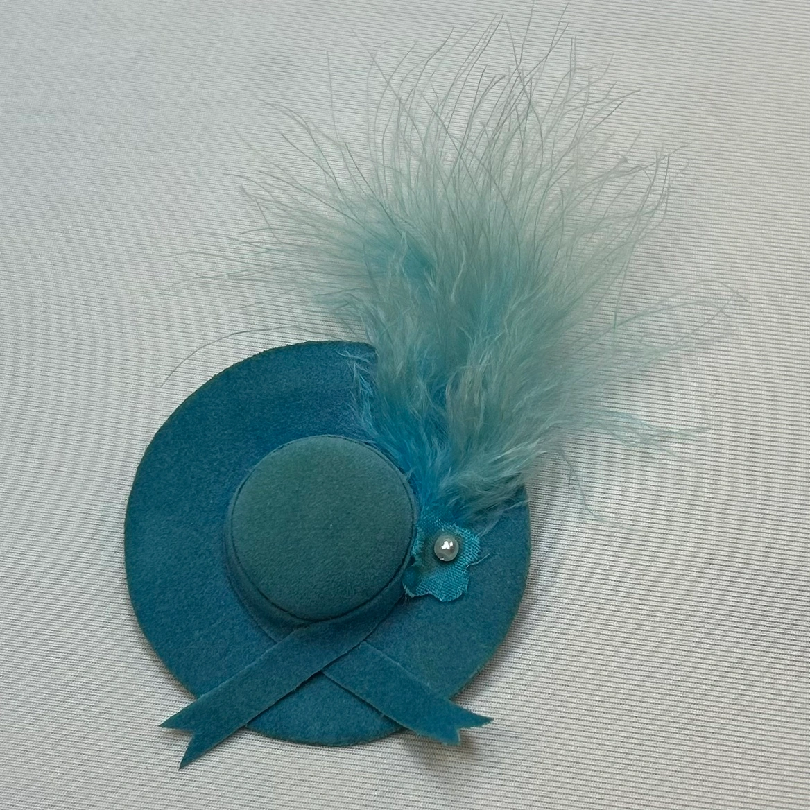 This exquisite brooch captures the essence of 1980s flair with its bold teal hue and whimsical design. Fashioned to resemble a miniaturized fancy hat, complete with a playful plume of delicate feathers, it's accented by a dainty ribbon and a subtle pearl embellishment that adds a touch of vintage elegance. This unique accessory is perfect for adding a retro-inspired dash of character to any ensemble. See photos for measurements. Cross posted.