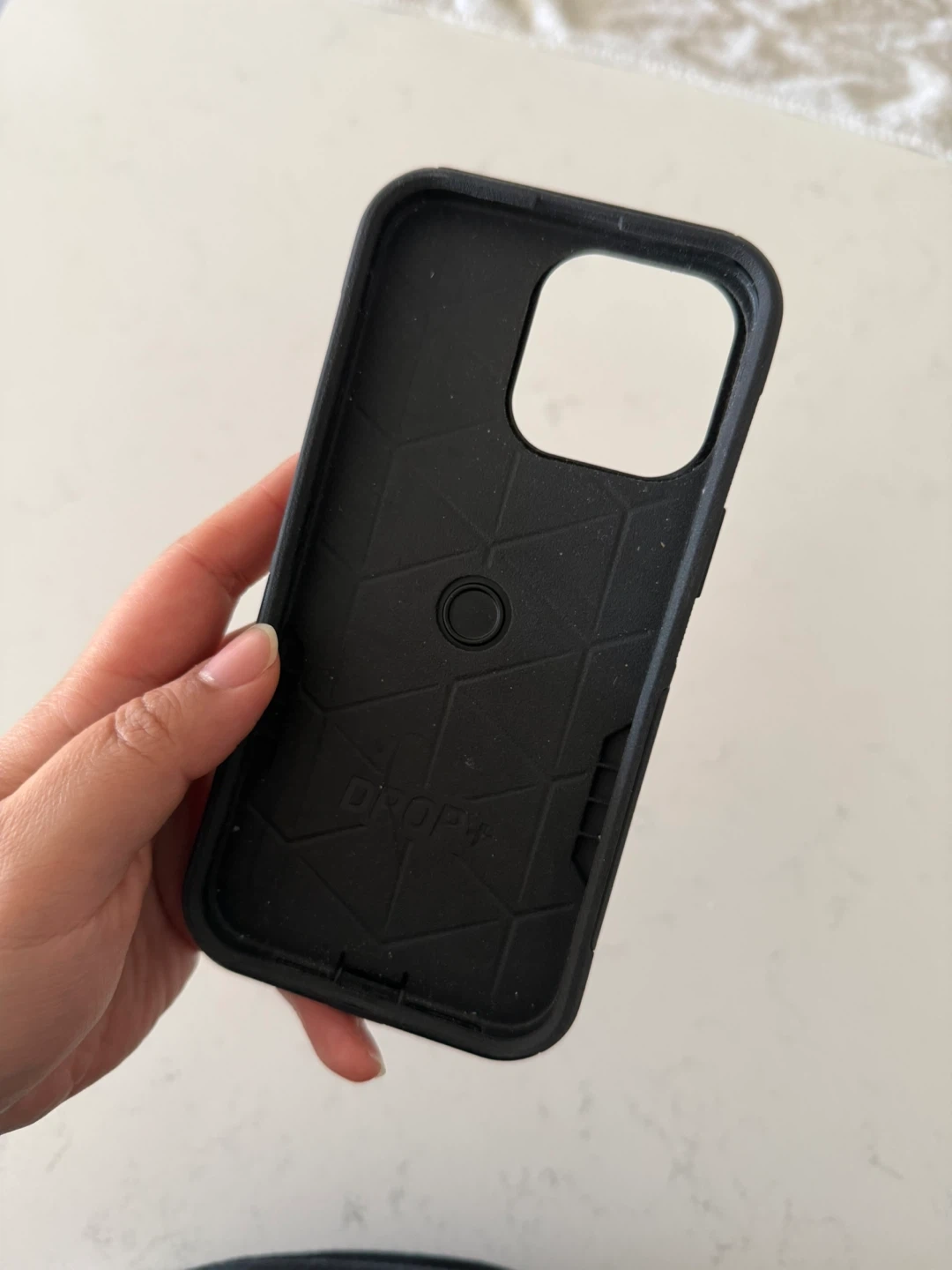 Selling an Otterbox phone case for the iPhone 14 Pro Max. It's in black and has a Drop+ design for extra protection. Lightly used, no scratches or broken parts.
