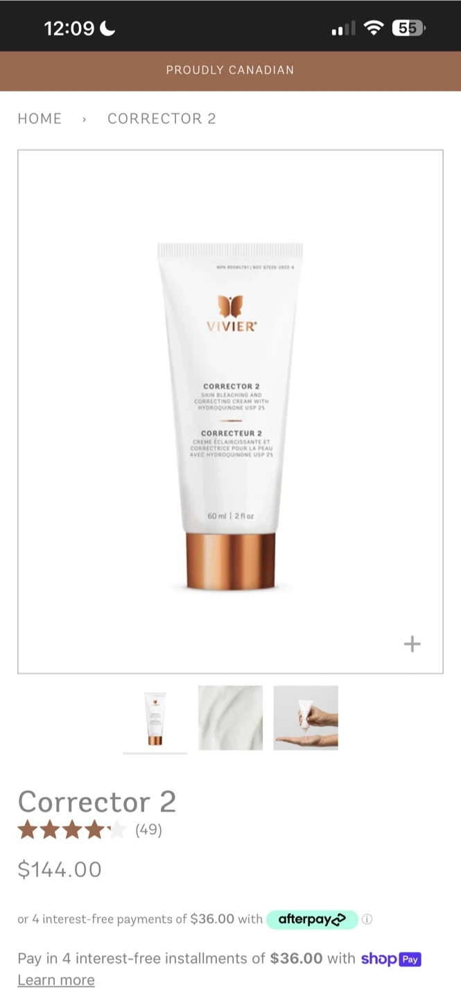 Selling a new tube of Vivier Corrector 2 skin bleaching and correcting cream. It contains Hydroquinone USP 2%. The tube contains 60 ml / 2 fl oz of product. Originally bought for $144 + tax used 3 times only so it’s basically full