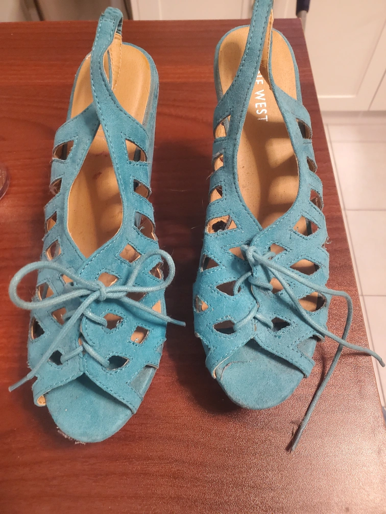 Buy & SellNine West Blue Wedge HeelsNine West Blue Wedge Heels$14These are blue wedge heeled sandals. They are in good condition, only worn once.ConditionLike newSize7BrandNine WestWHERE TO MEETCheck LocationView MapSELLERKatCorso Italia150 reviews0 chats·0 favorites·30 views