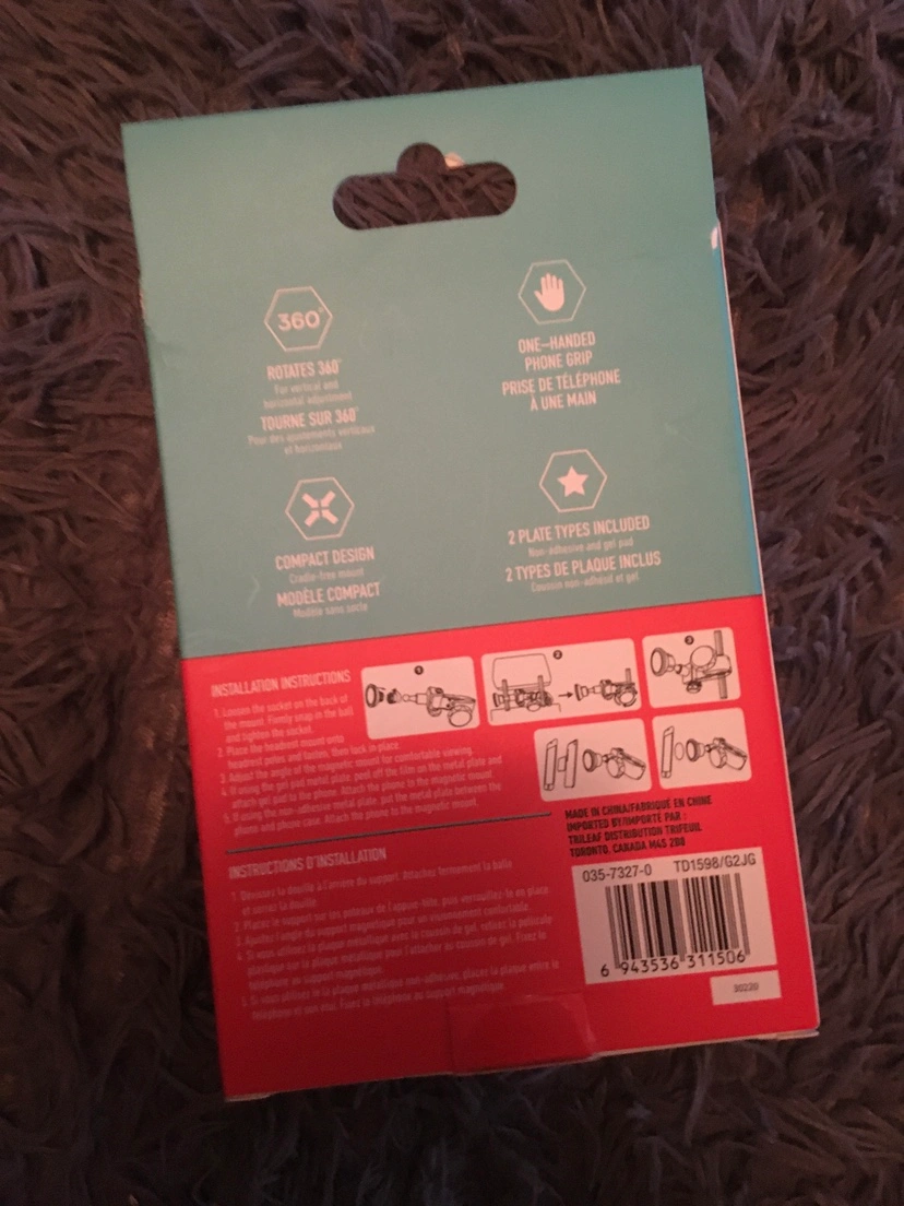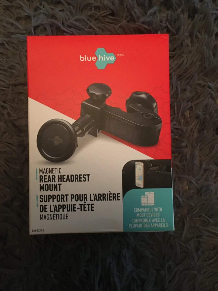 106A magnetic phone mount that attaches to the back of your car headrest. The mount is compatible with most phones and has a 360 degree rotation. Comes with two types of plates.