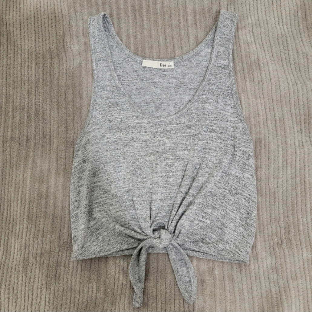 Aritzia Wilfred Free grey Betsy Tank with tie-front detail at the bottom.
