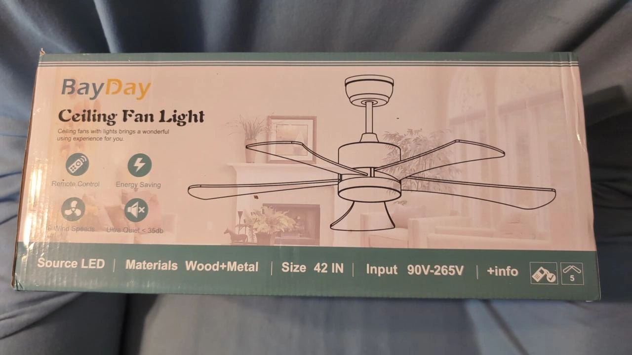 * Factory sealed, never used * Wood Brown finish * Indoor and Outdoor * Can be used with flat or sloped ceiling * Works with max 15˚ sloped ceiling * Controlled by remote and phone app * Comes with 4" and 8" downrods * Copper DC motor * Noise level less than 30 db * 6 adjustable speeds, max speed - 220 rpm * 2-hour timer * 3 color temperatures and dimmable brightness * Memory - retains the last setting * Should not be exposed directly to rain Current Amazon.ca price for this indoor/outdoor 42 Inch Ceiling Fan w/ Dimmable Lights & Remote/APP Control: $99.99. You get this brand new, never used item at a really good price and pickup for free. Box is unopened, sealed by the manufacturer, and the item is completely brand new. Cash only. Pickup in Etobicoke or Mississauga: Email us to make arrangements. +++++ 42 Inch Ceiling Fan with Lights - Modern Ceiling Fan - Remote Control Ceiling Fan - App Controlled Ceiling Fan - DC Motor Quiet Ceiling Fan - 3CCT Dimmable Memory Ceiling Fan - LED Ceiling Fan - Sloped Ceiling Fan - Flat Ceiling Fan - Ceiling Fan for Bedroom - Indoor Outdoor Ceiling Fan - Patio Ceiling Fan - Wood Brown Ceiling Fan - BayDay Ceiling Fan - Flush Mount Ceiling Fan - Propeller Shaped Blades Ceiling Fan - 5 Blade Ceiling Fan - 100-225 sq-ft Ceiling Fan - Custom Fit Ceiling Fan - High Low Ceiling Fan - Ceiling Fan with 4" and 8" Downrods - Ceiling Fan for Slanted Ceilings - Ceiling Fan with Remote Control - Ceiling Fan with App Control - Super Quiet Ceiling Fan - Energy Saving Ceiling Fan - DC Motor Ceiling Fan - 6 Speed Ceiling Fan - Reversible Ceiling Fan - Ceiling Fan with Timer - Bright LED Ceiling Fan - 3 Color Changeable Ceiling Fan - 20W LED Ceiling Fan - Dimmable Ceiling Fan - Warm Neutral White Light Ceiling Fan - Ceiling Fan with Memory Function - Remote and App Controlled Fan - Easy Install Ceiling Fan - Wood Ceiling Fan - Brown Ceiling Fan