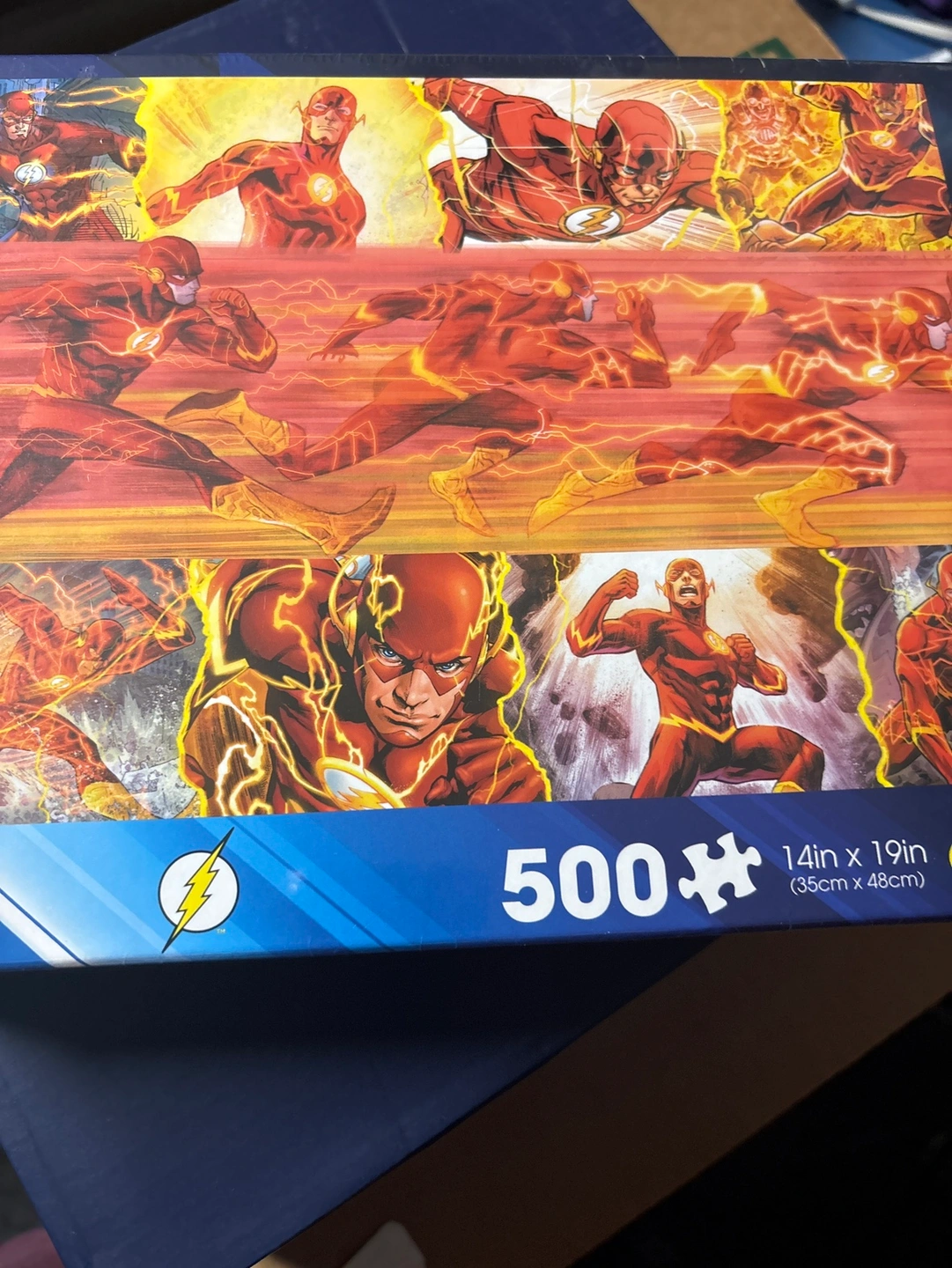 The Flash 500 piece puzzle features the Flash in various poses. The puzzle is 14 inches by 19 inches. Great for Christmas This was $25 plus tax originally Sealed in box