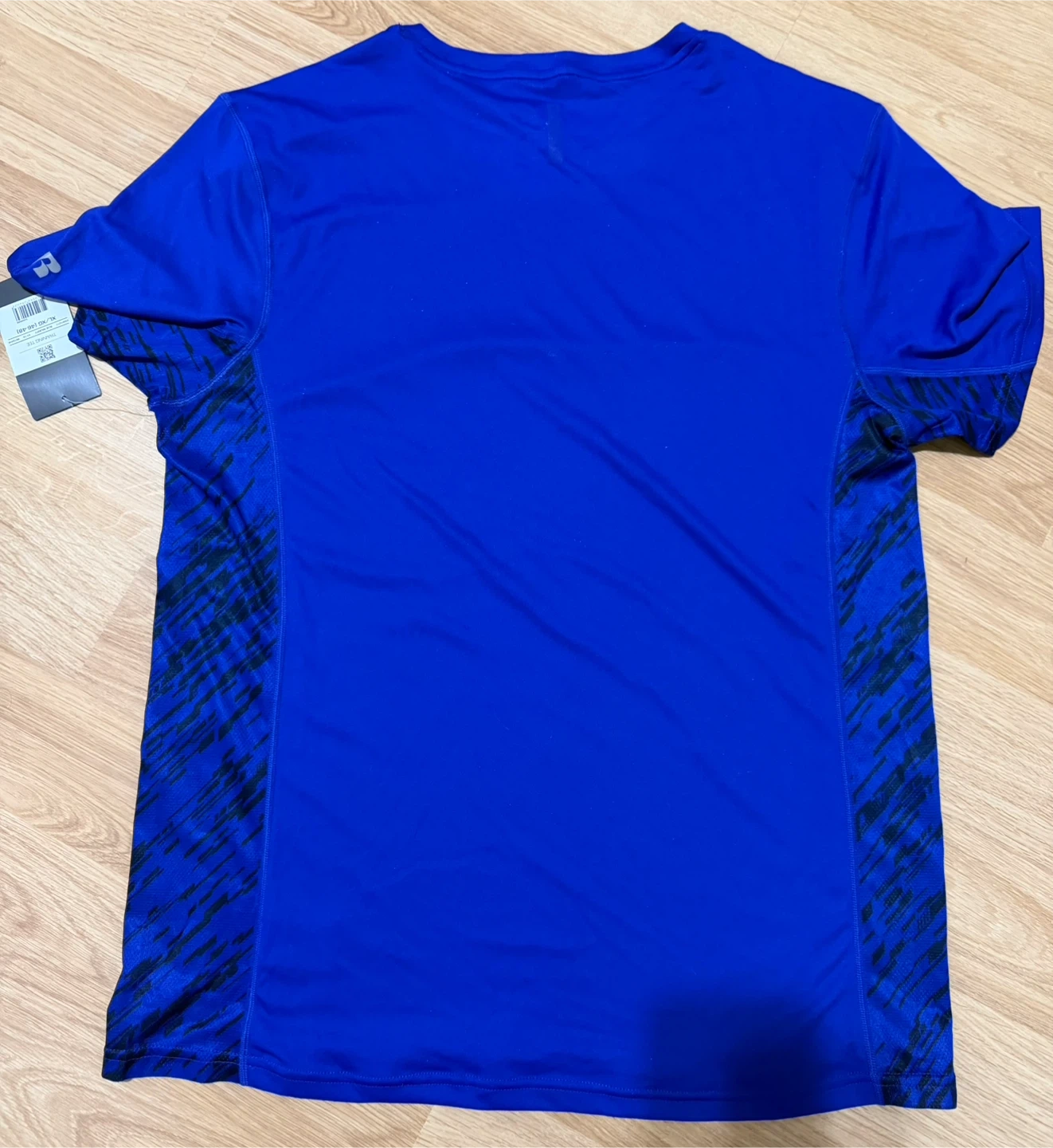 Russell Athletic men's training t-shirt in blue. Dri-Power 360 technology helps manage moisture. Size XL