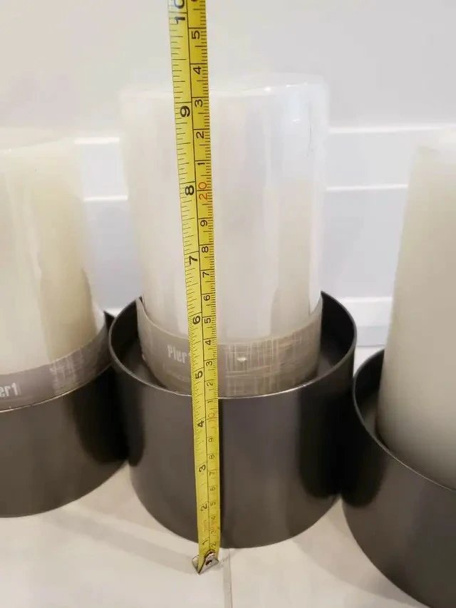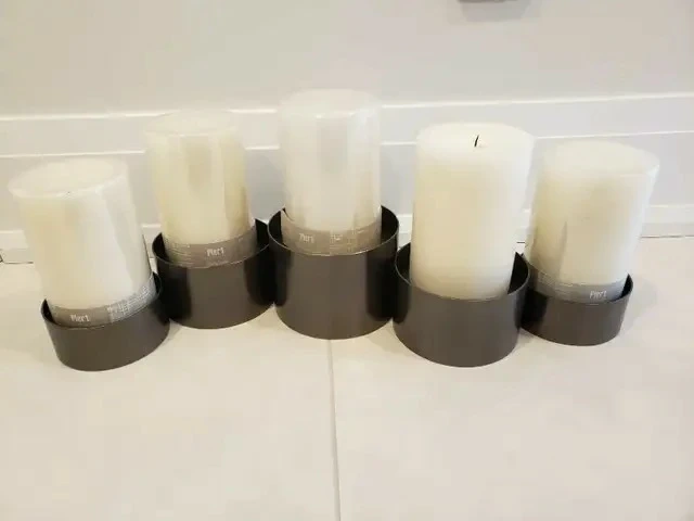 CRATE AND BARREL Links Pewter Centerpiece Pillar Candle Holder w 5 Pire 1 White Unscented Candles