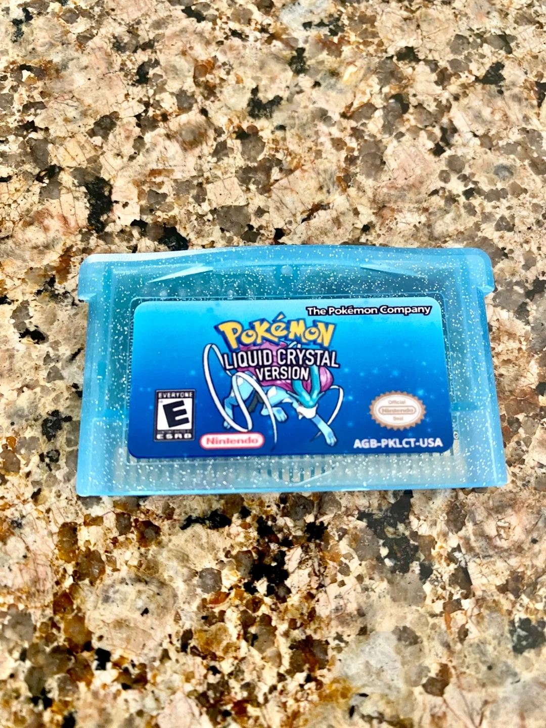 This is the Pokémon Liquid Crystal Version game for Game Boy Advance. It's a Crystal remake known for its extensive features and content. Players can embark on an adventure across two regions, Kanto and Johto.