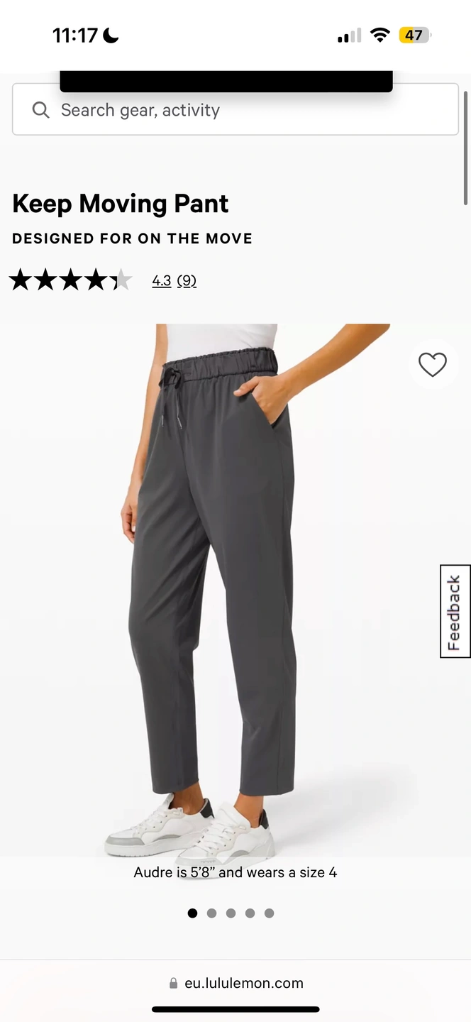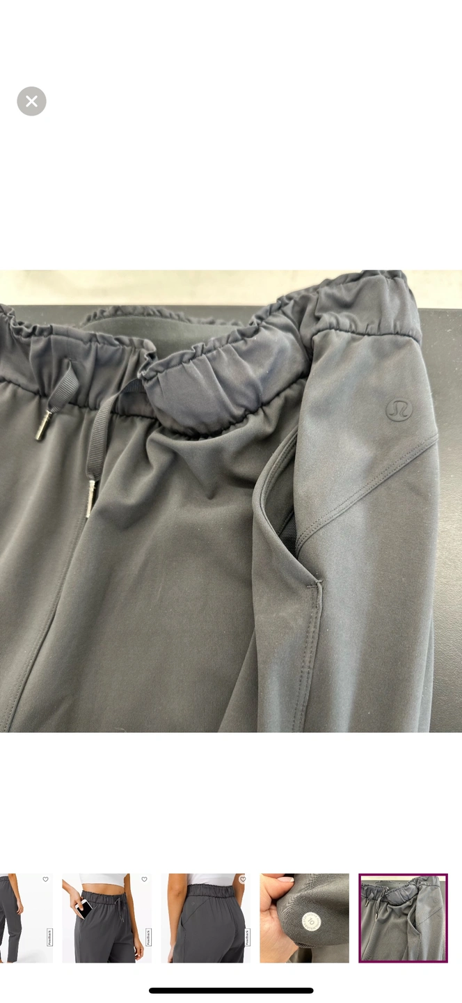Grey Lululemon Keep Moving Pant with elastic waistband and drawstring.