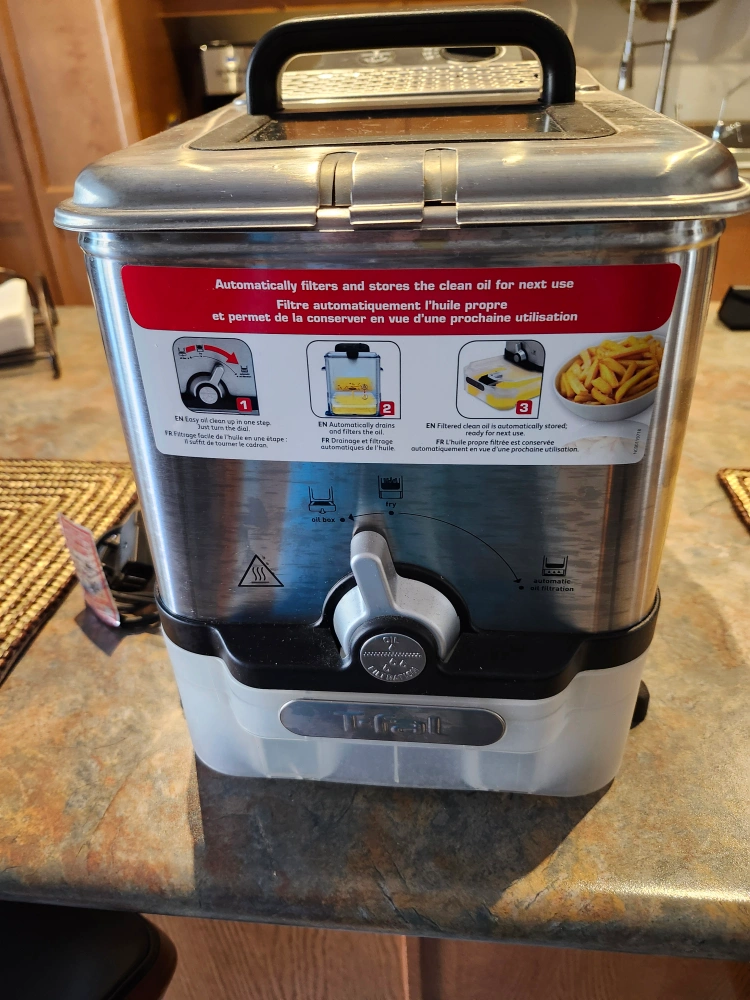 T-Fal Deep Fryer with self-filtering system that automatically drains, filters and stores the clean oil for next use.