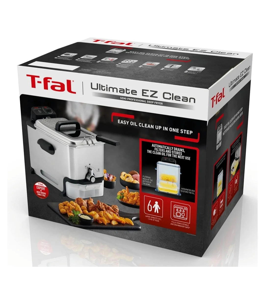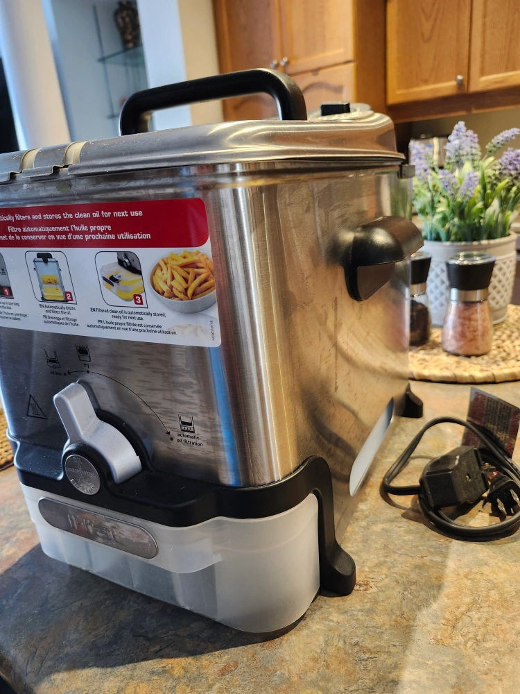 T-Fal Deep Fryer with self-filtering system that automatically drains, filters and stores the clean oil for next use.