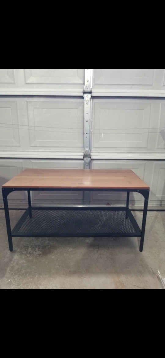 Black Metal and Wood Coffee Table