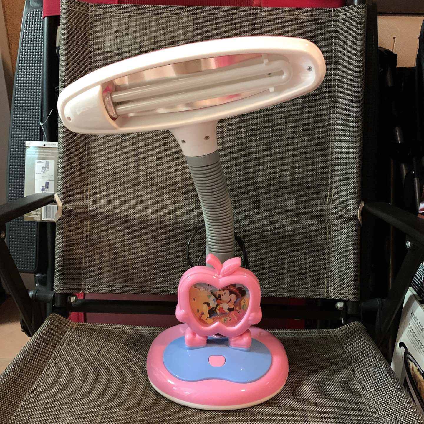 A cute Mickey Mouse themed lamp. The neck is adjustable and flexible to allow for how much light you need. To turn on and off the light, there is just one button so it’s perfect for kids.