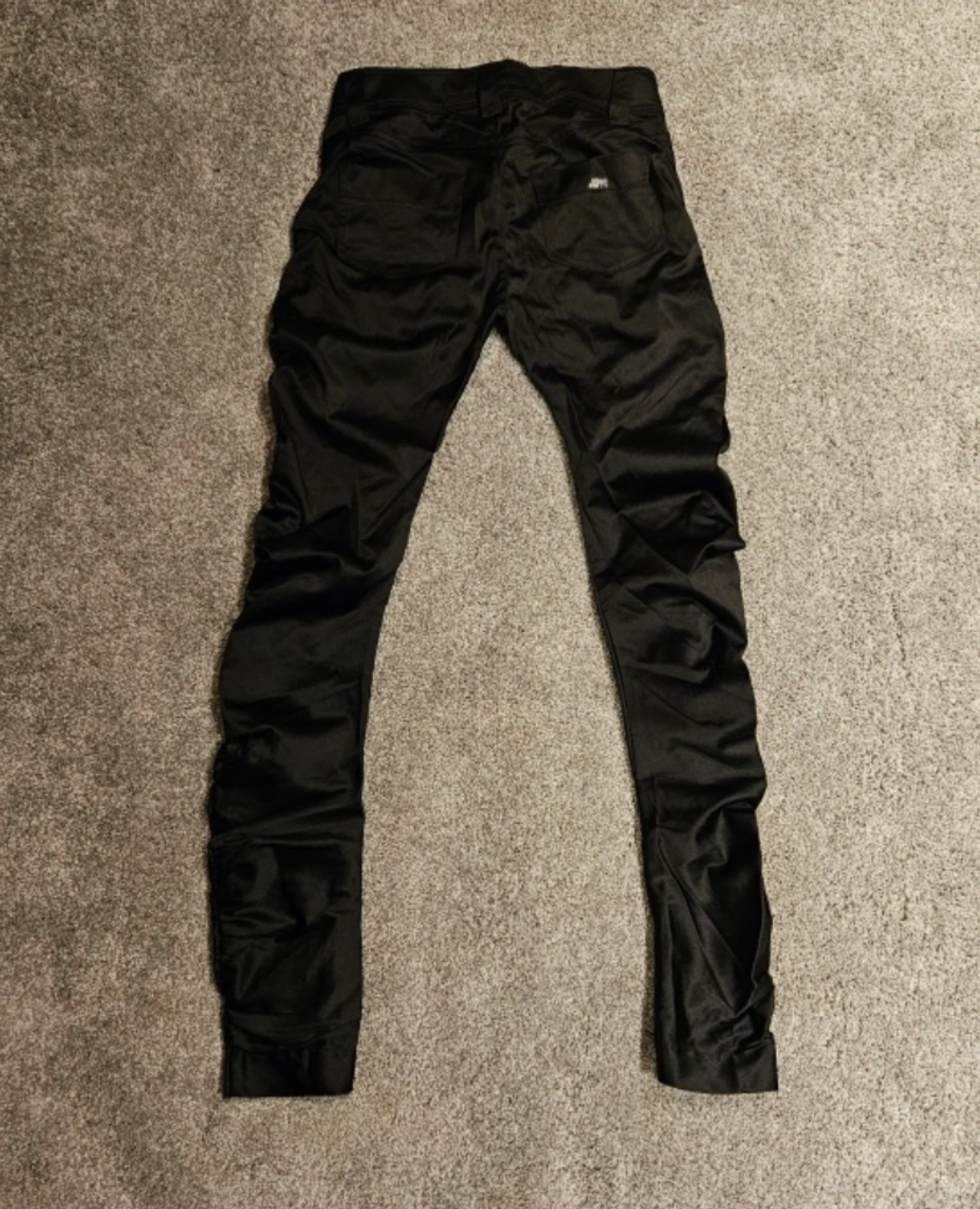 Black, Satin, Miss Sixty dress pants or casual pants with ruching up the sides. They also have a zipper at the ankle that goes up about 2.5 inches on both sides. Never worn, size 25 (small)