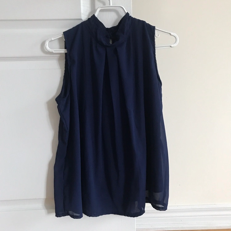 High neck and an open back. It has a button closure at the back of the neck. Perfect for office, date night, or a day out with friends.