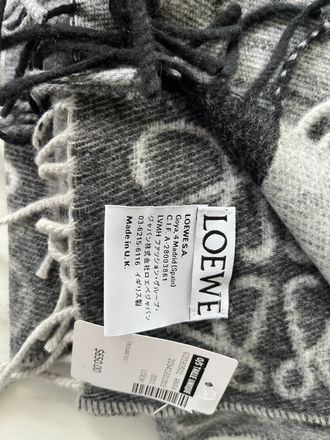 Authentic Brand New LOEWE Anagram scarf, never been used, price tag still attached.