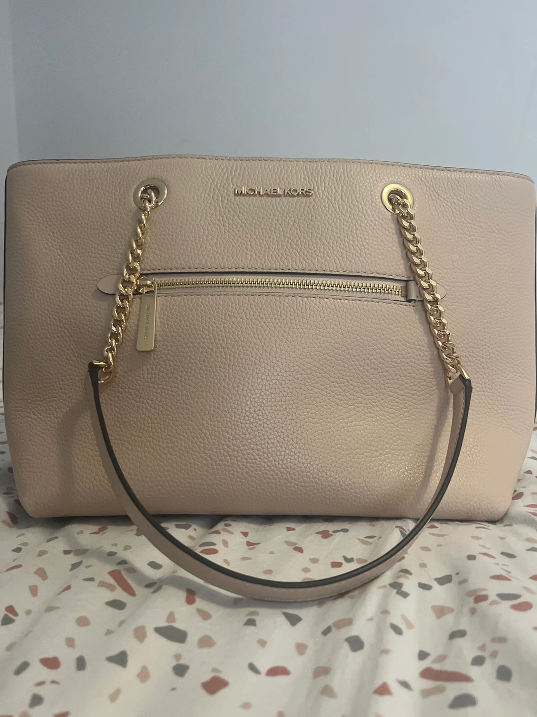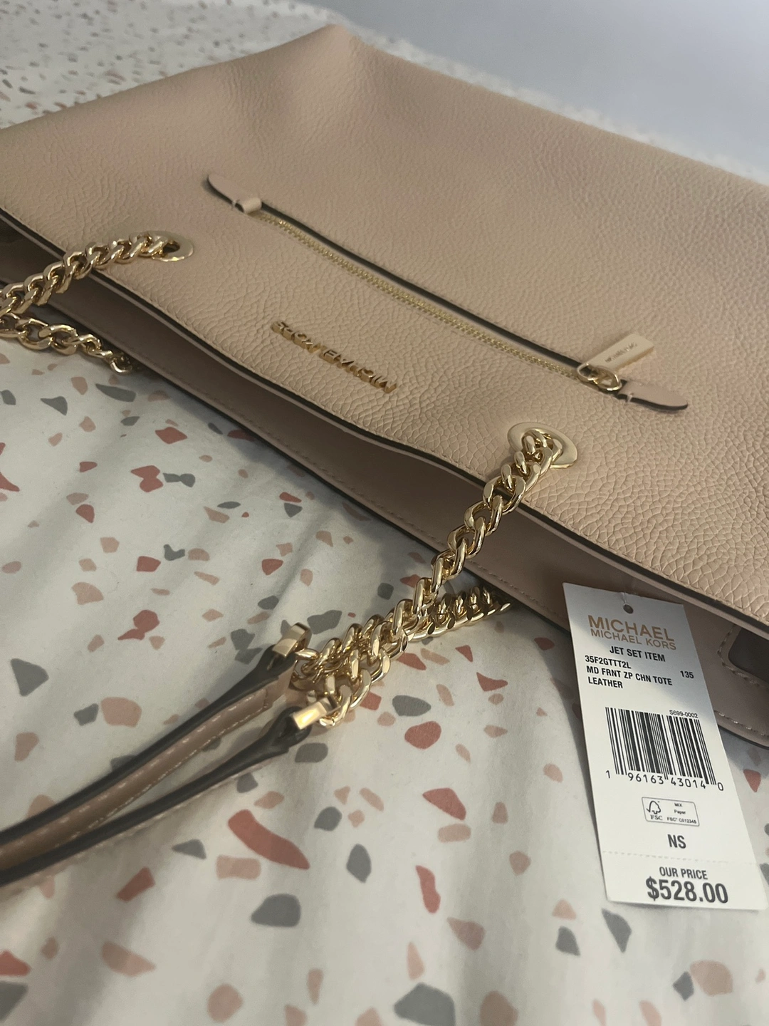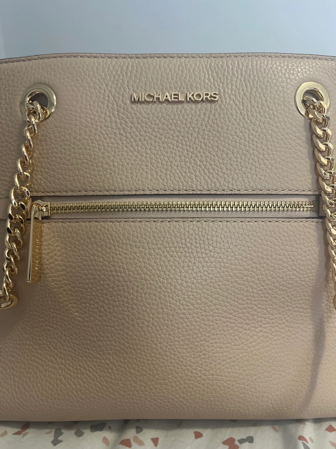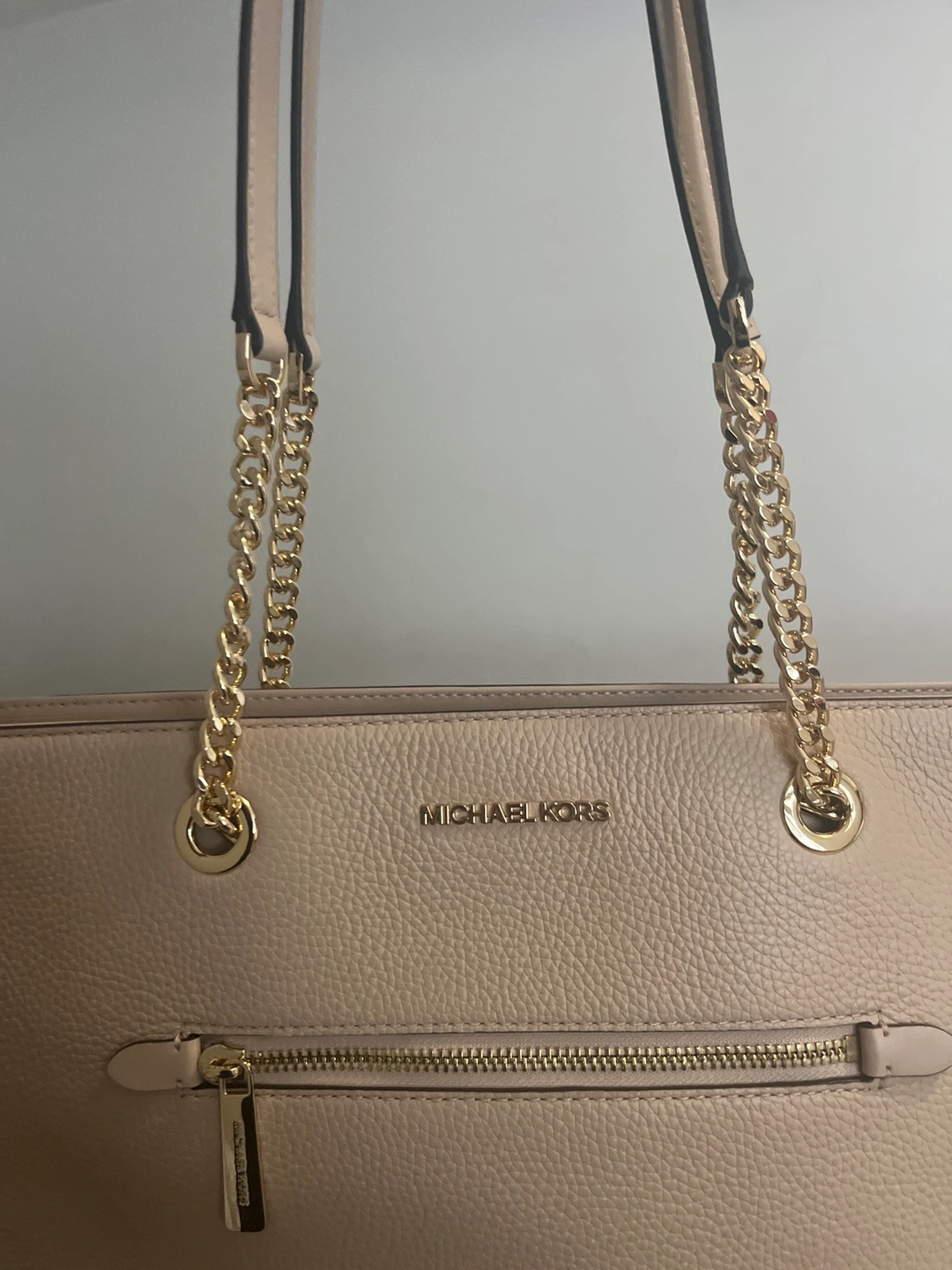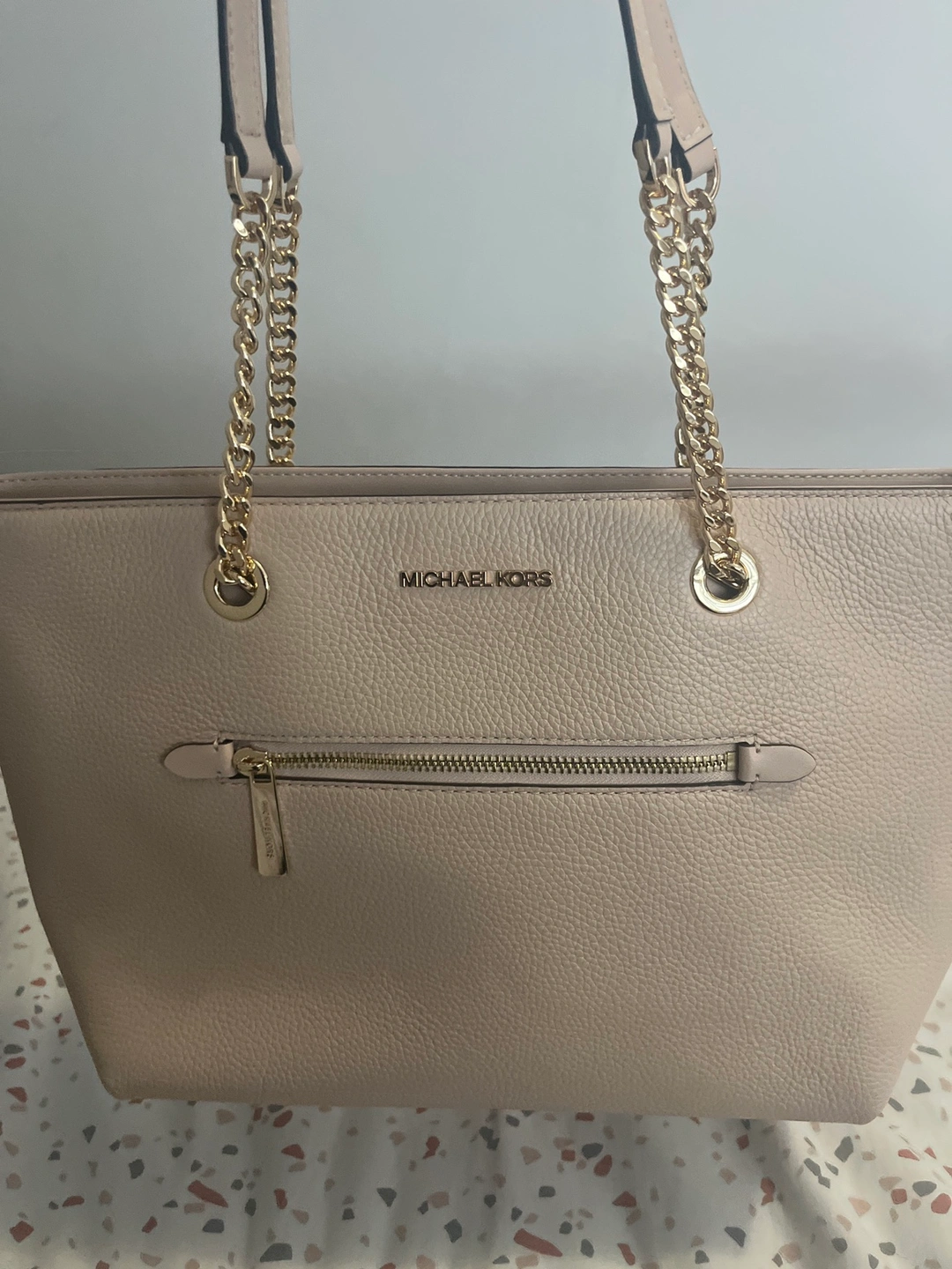 Michael Kors Tote Bag with chain straps and gold hardware. Has a zip pocket on the back and one inside the bag Tags still on never been used Suitable for everyday use.