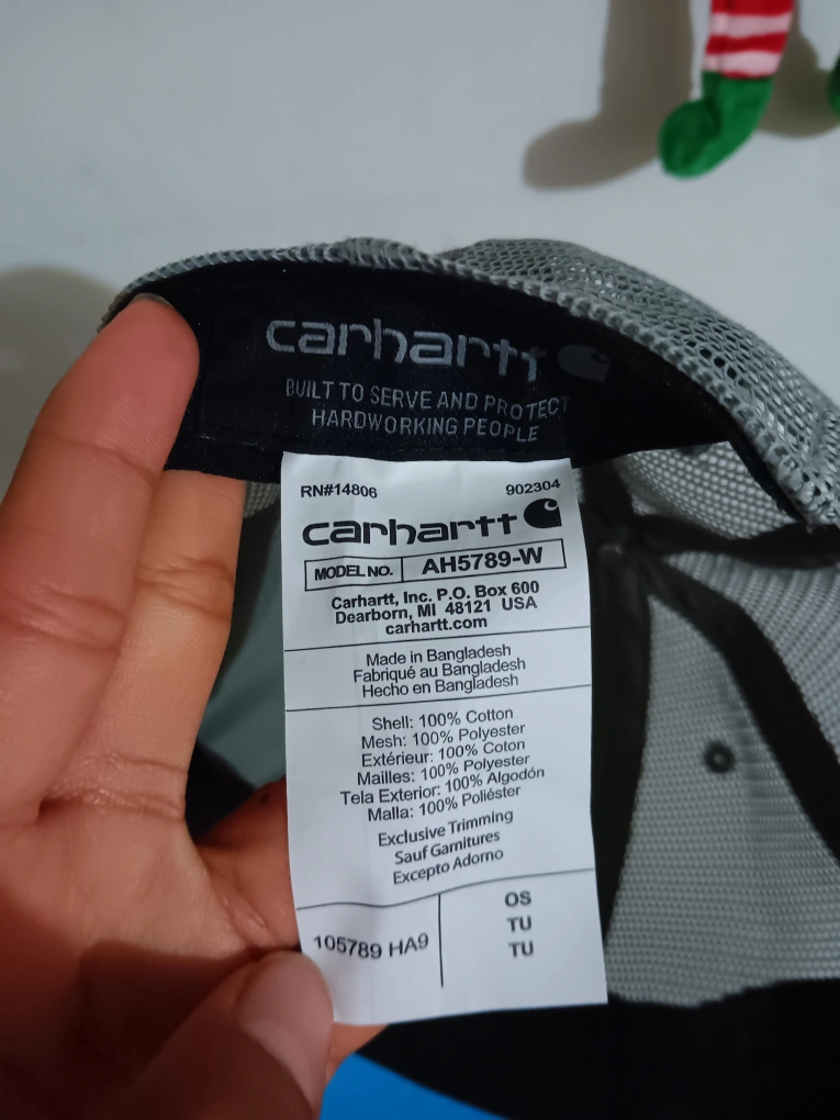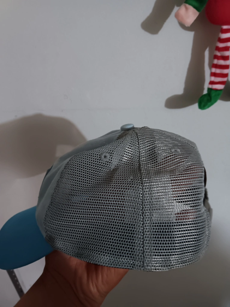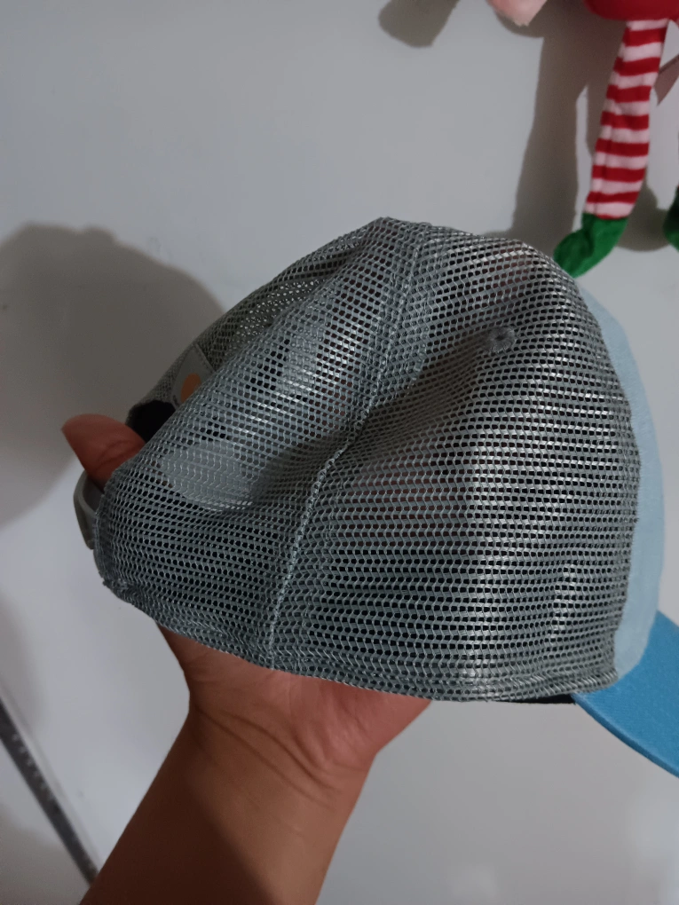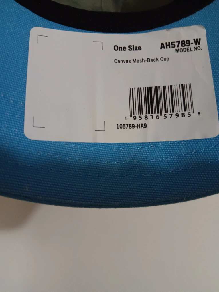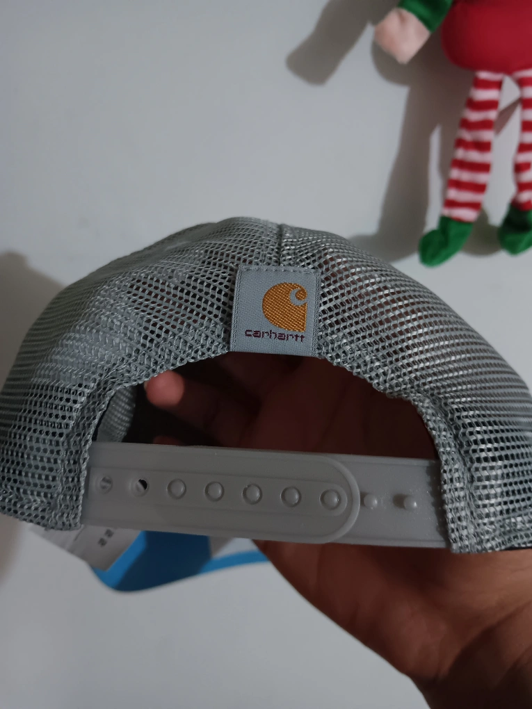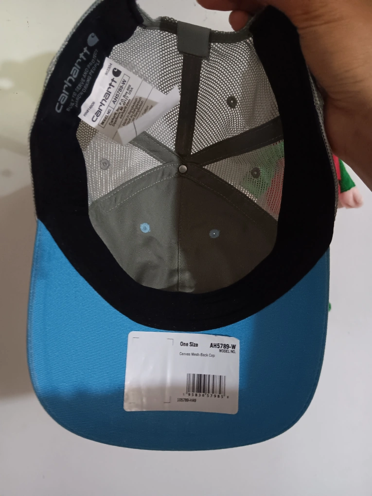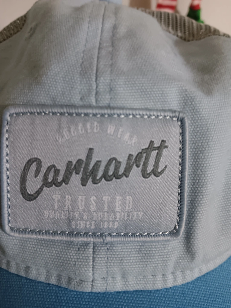 25One size, blue, and grey Carhartt mesh-back cap with adjustable strap. Fits small, I assume it's for a lady.