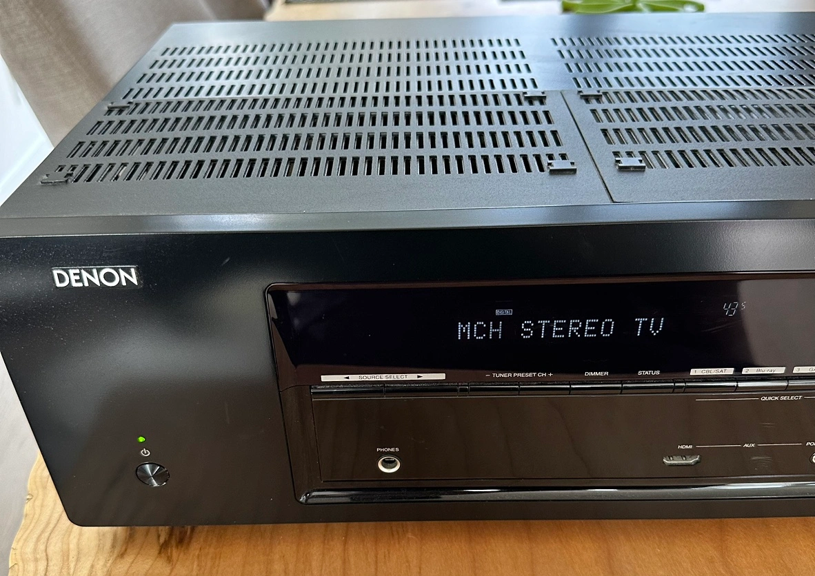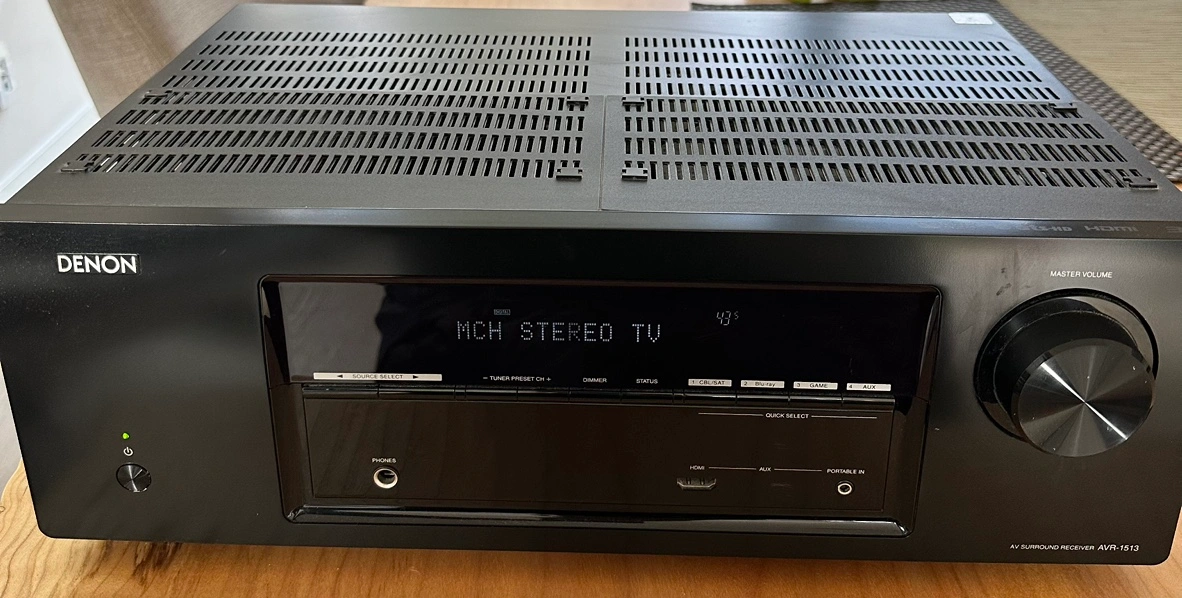 174This is a Denon AVR-1513 receiver. It is a 5.1 channel receiver with HDMI inputs and outputs. Power and Processing: 5-channel amplifier 75 watts per channel into 8 ohms (20-20,000 Hz) at 0.08% THD, with 2 channels driven Dolby® TrueHD, DTS-HD™ Master Audio, Dolby® Digital Plus, DTS-HD™ High Resolution Audio, Dolby® Digital EX, DTS-ES™, and DTS Neo:6 decoding Digital Music Options: listen to music from a portable music player via the front-panel mini-jack input Audio Performance Features: high-current, low-impedance amp design Compressed Audio Restorer for better sound with compressed music sources like MP3 files 192kHz/24-bit digital-to-analog converters for all channels Connections: 1080p-compatible HDMI digital audio/video switching; 4 in, (including 1 front-panel input) 1 out HDMI version 1.4a with support for 3D video, Deep Color, x.v.Color, auto lip-sync, and HDMI-CEC (no Audio Return Channel) 2-rear-panel audio/video inputs with composite video