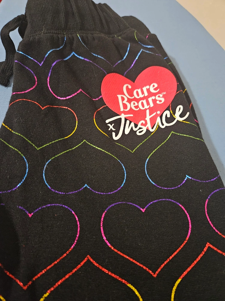 Black Trouser with shiny multicolor heart printed. Used like new size 10. Pet/smoke-free house.