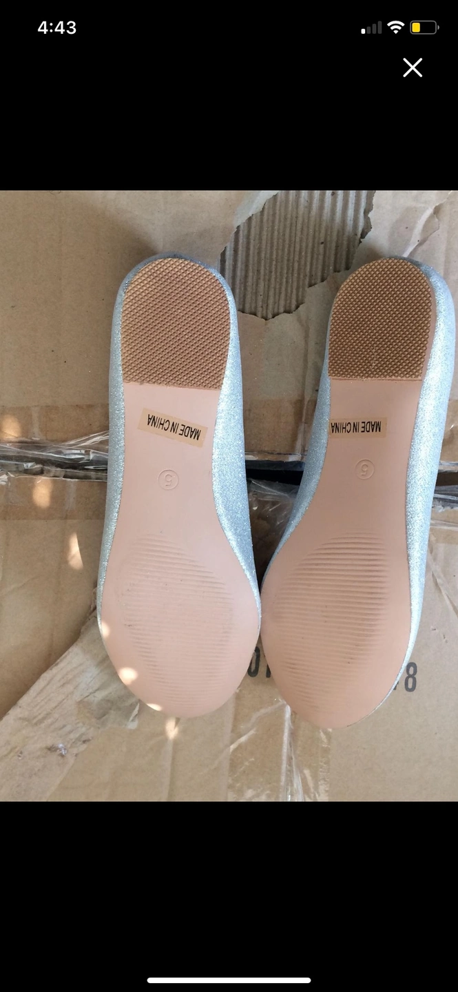 151These are a pair of silver glitter flats. They are size 6. The flats are a comfortable and stylish option for any occasion. Never worn