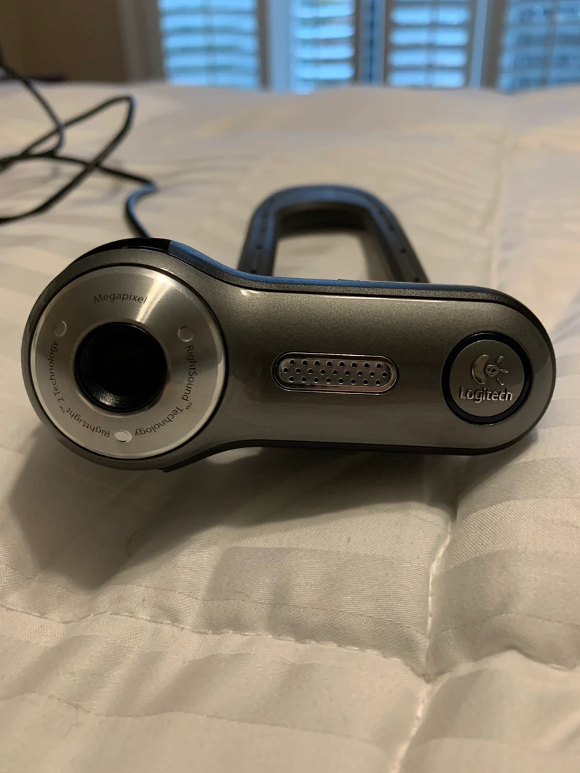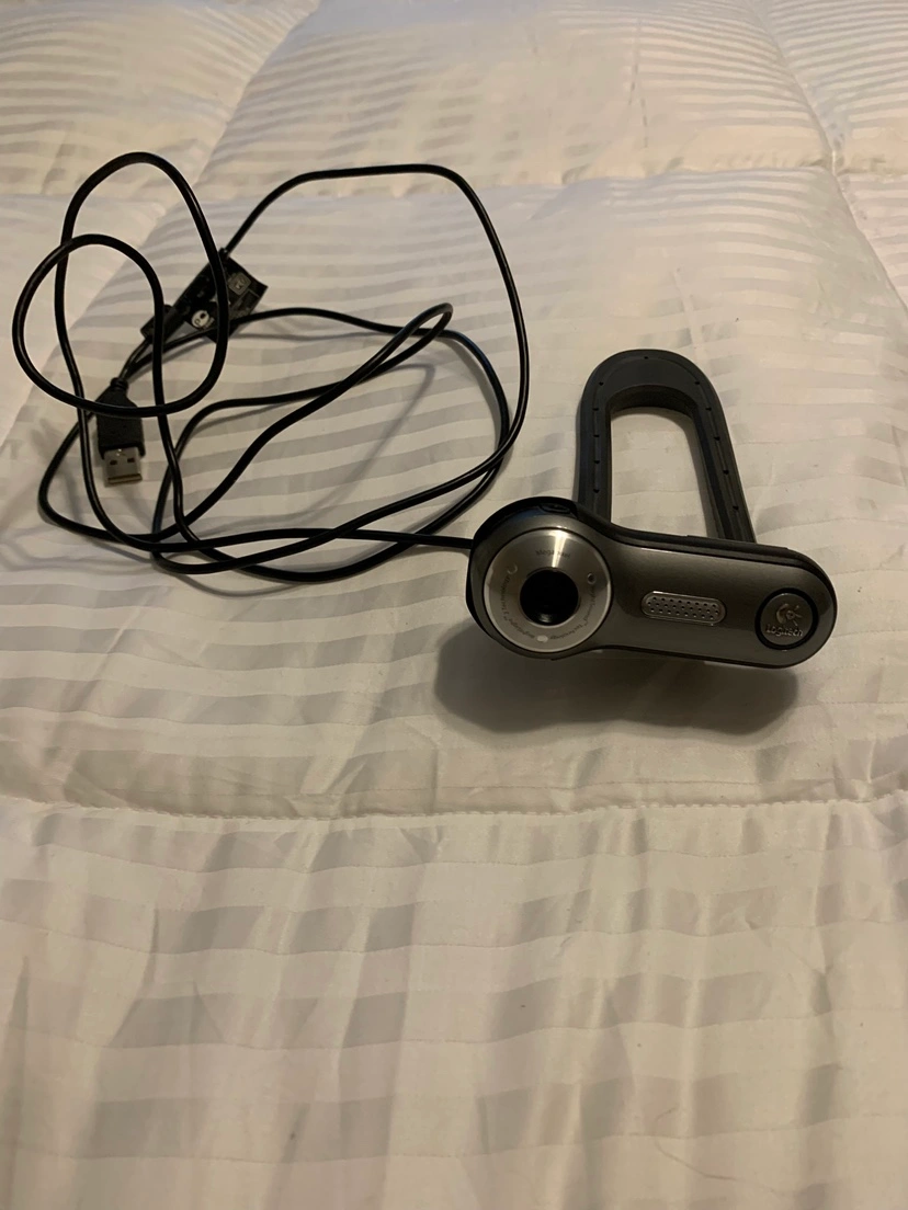 67This is a Logitech webcam. It is silver and black in colour. It is used, but in good condition.
