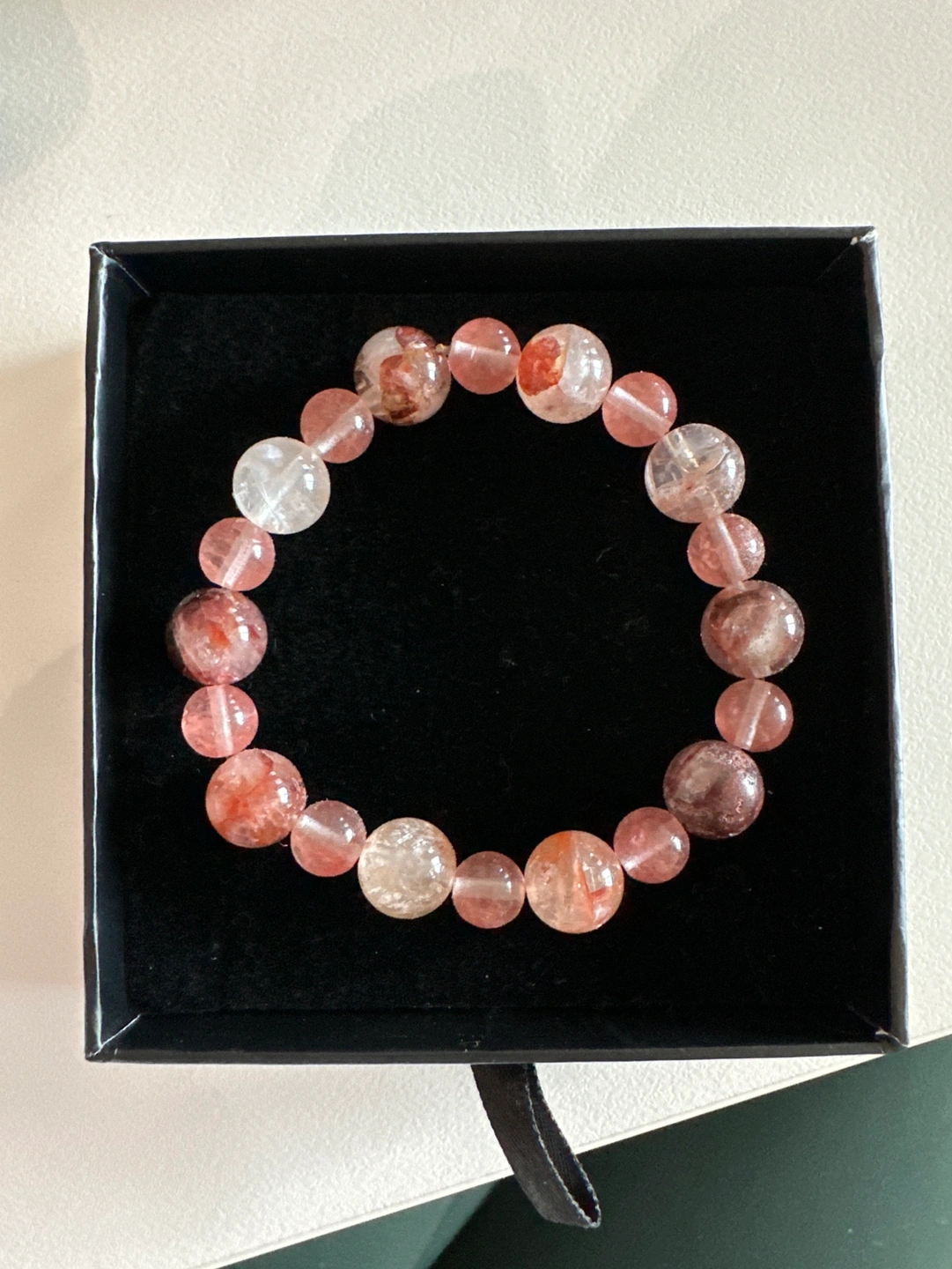 1000+Beautiful bracelet made of pink and clear stones. Elasticized and fits a standard sized wrist.