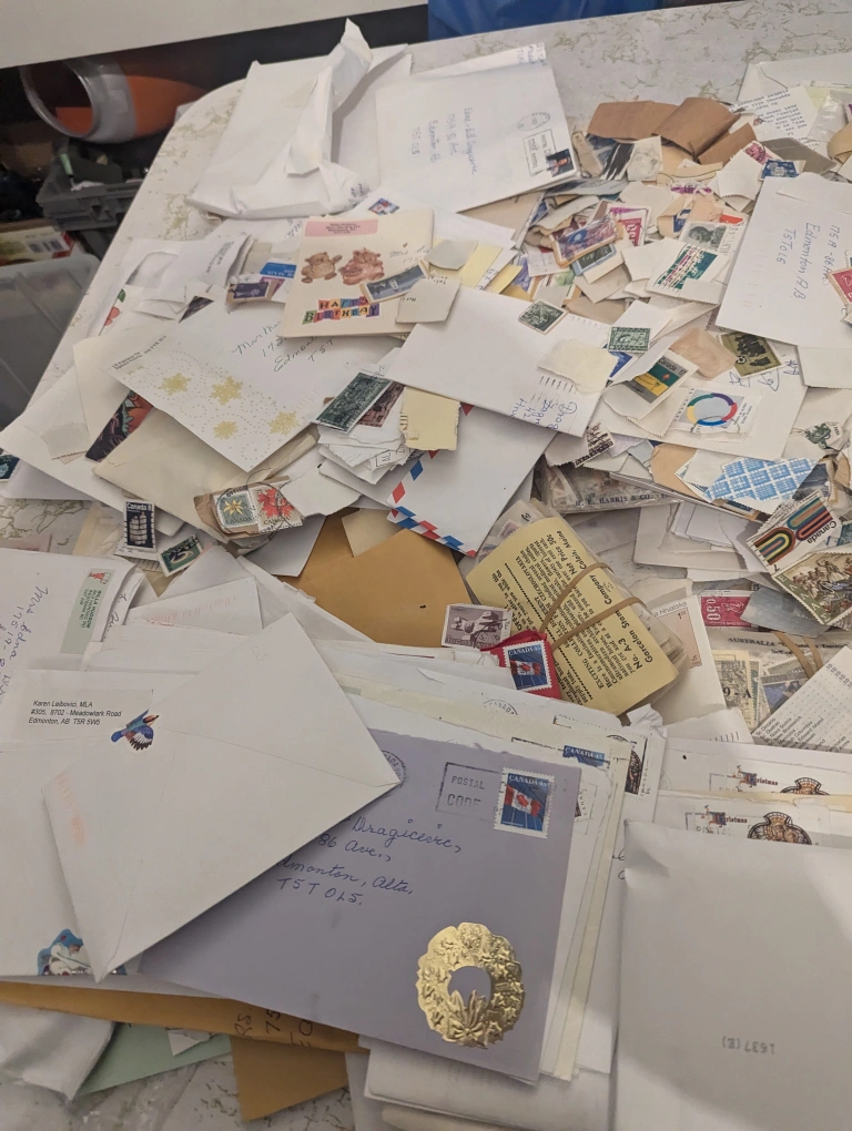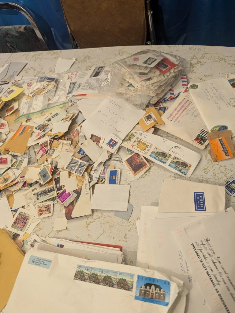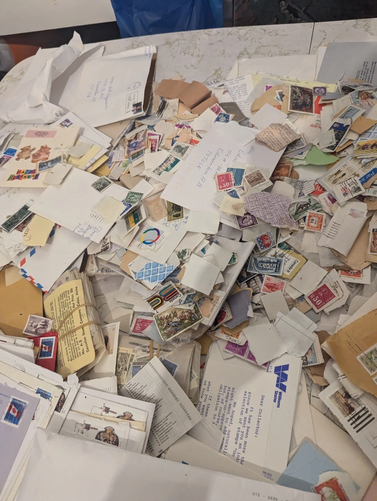 Stamps from all over the world.. the person who saved all of them started in the 1930s and many are from earlier times. Too many for me to display here. Is therea gem in the box? I have no idea but many are older. There are a lot of stamps to go through .