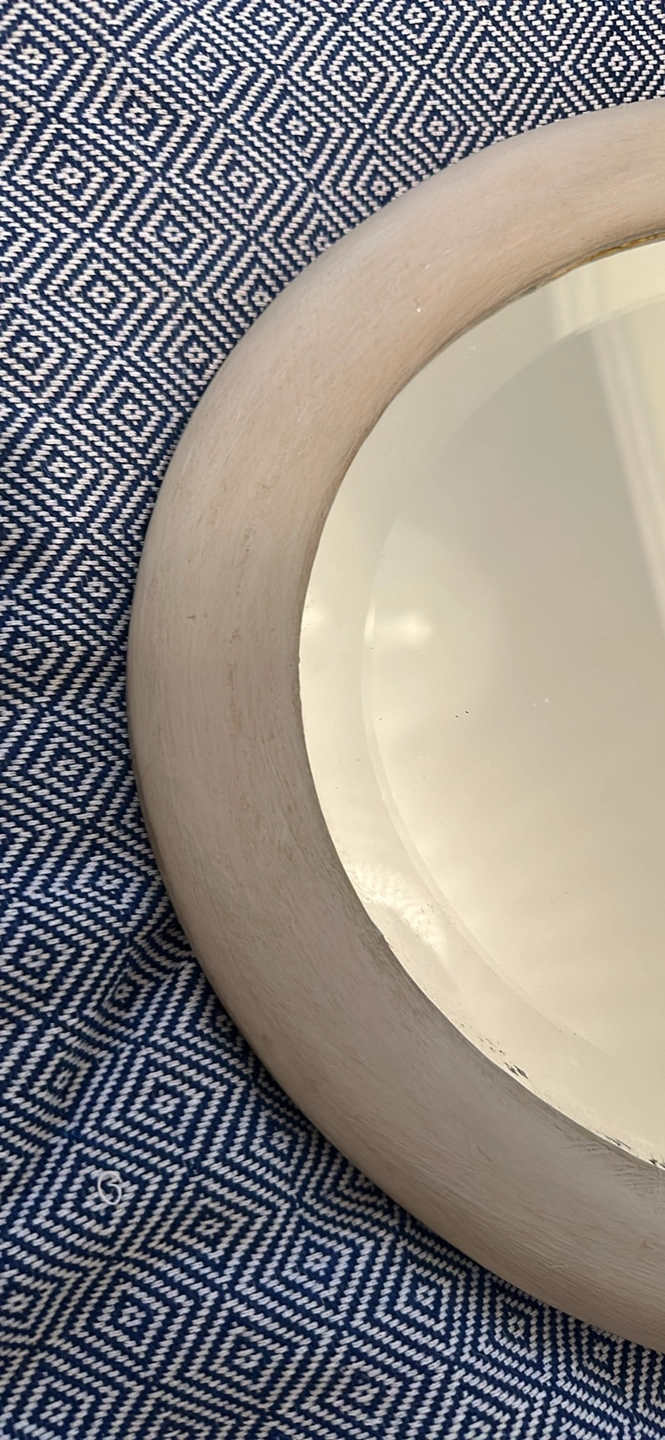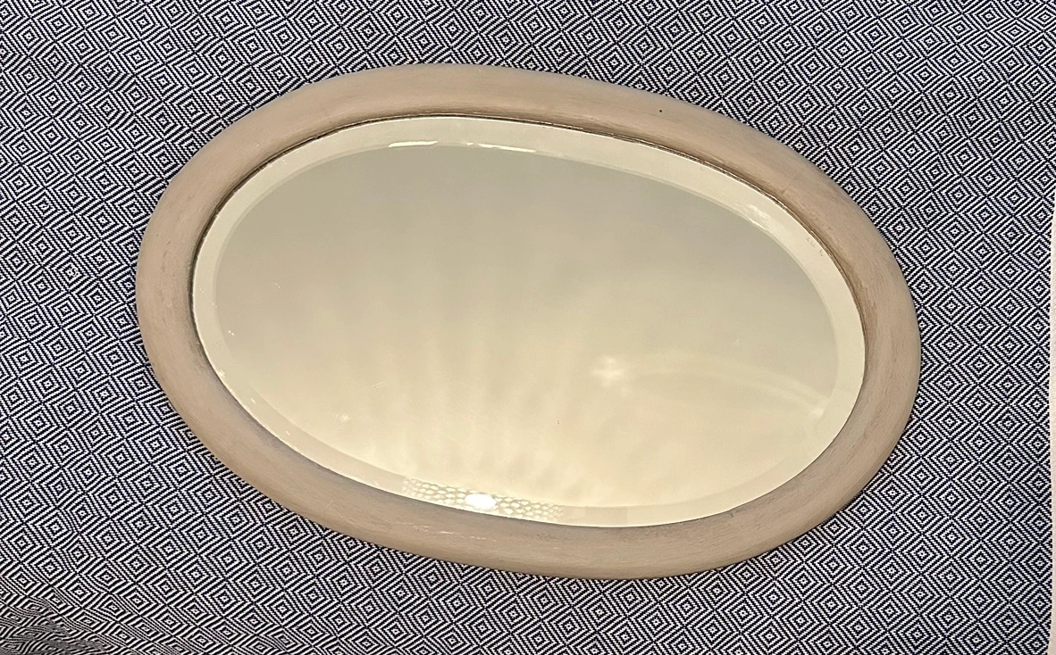 This is a lovely vintage mirror with an oval frame. It would be perfect for a bathroom, bedroom, or hallway. It is in good condition and ready to hang. It measures about 18" x 14".