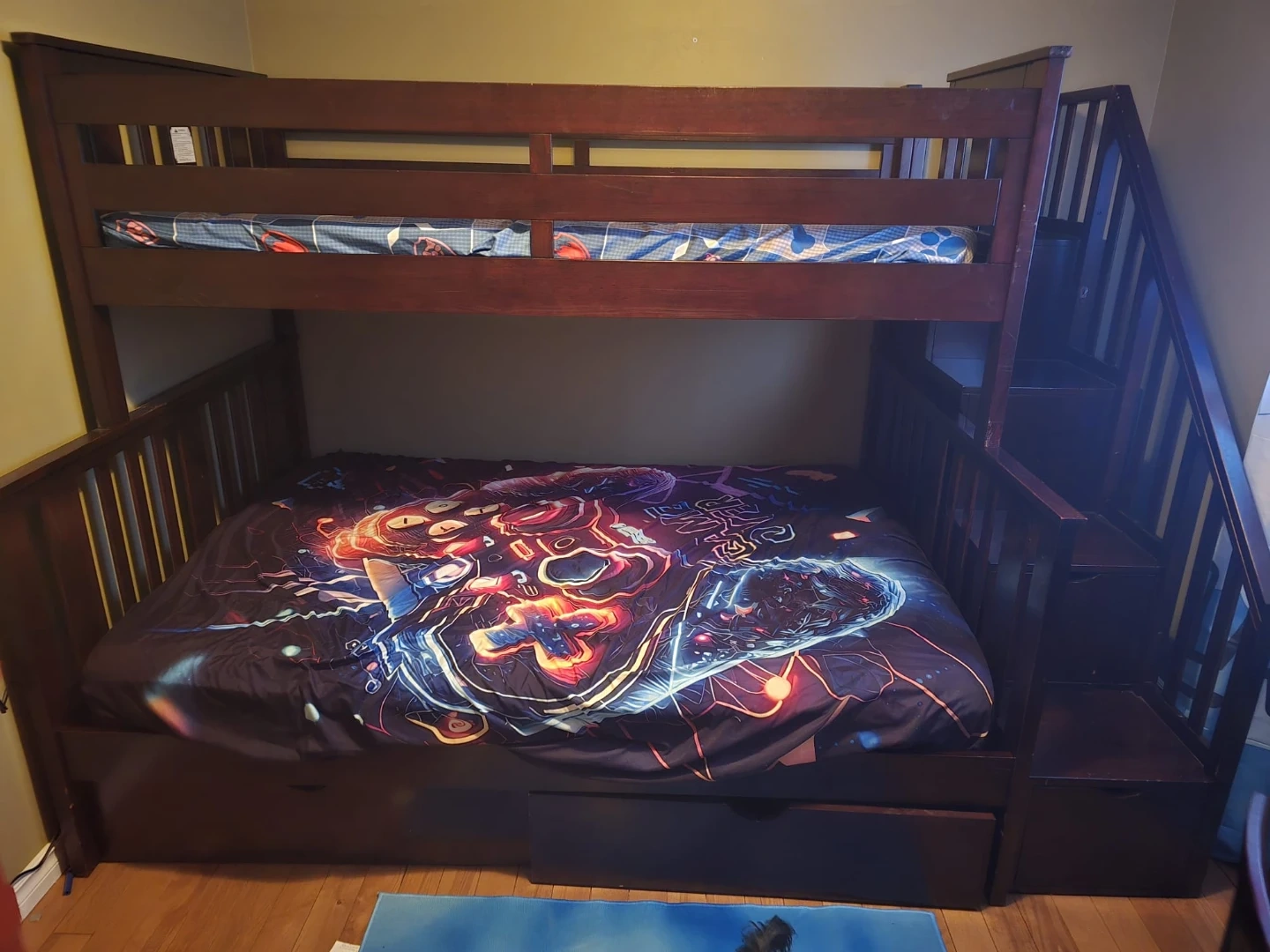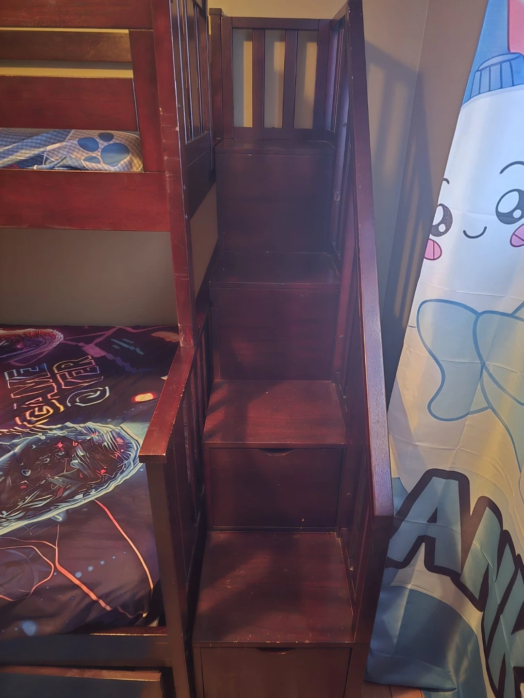 Dark Wood Bunk Bed with Stairs and Storage Drawer