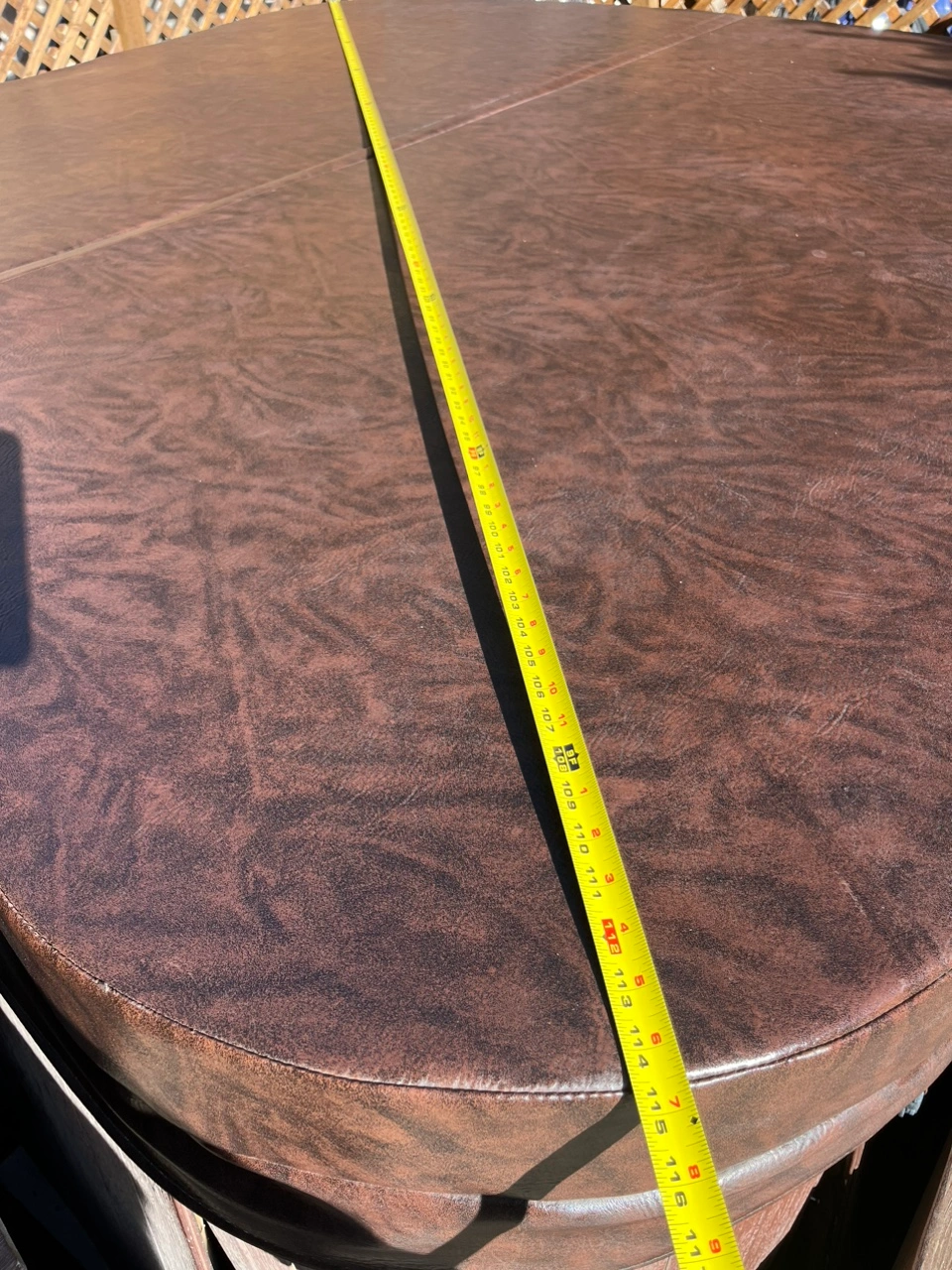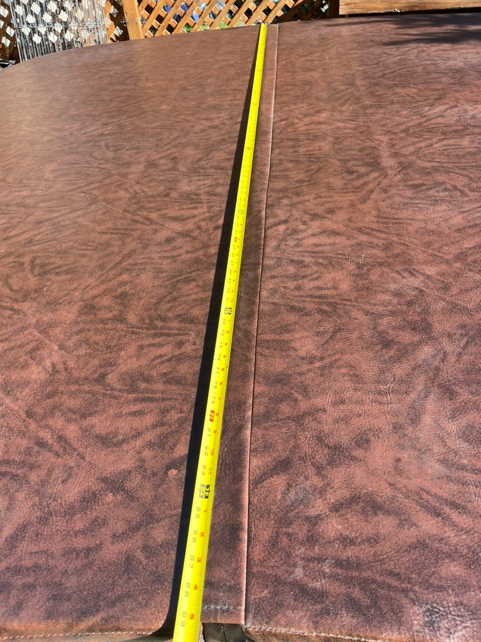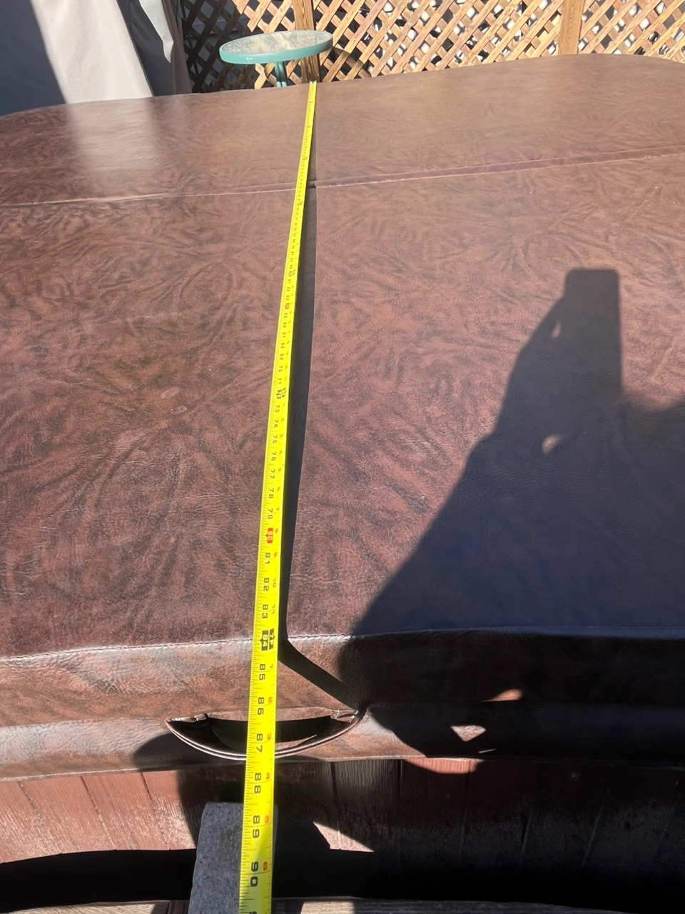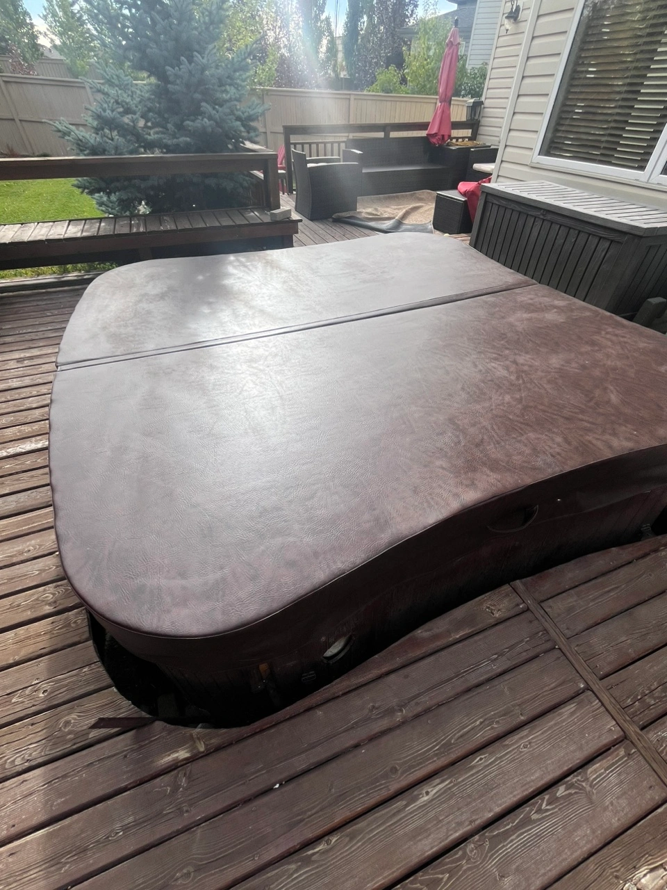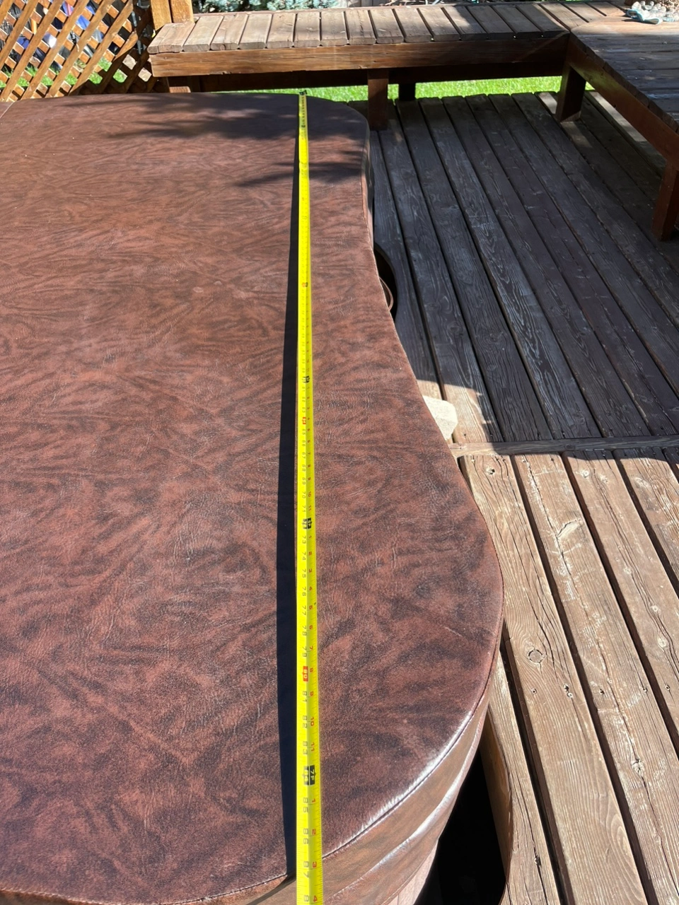 Chestnut brown hot tub cover purchased 16 months ago. We are down-sizing to a smaller tub. New-paid $735. Up to $1100 to replace with some vendors. No rips or tears. Cleaned regularly with Arctic Pure Cover and Cabinet Renew. Lock down clips included. (Fits an Arctic Spa Tucson Coyote or similar tub that is 89”x 93” x 35.5”. Save $ in heating costs this winter with a new hot tub cover)!