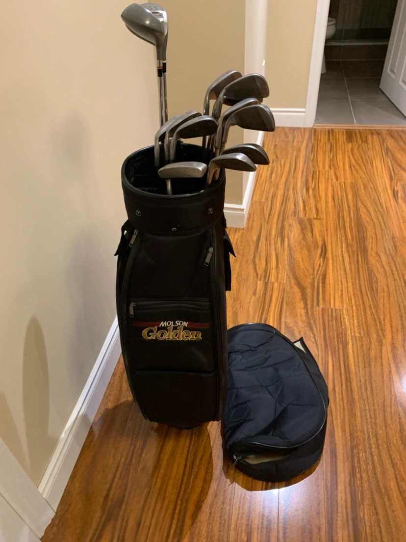 Full set of golf clubs with the golf bag and cover. They are “Hulk Oversized” clubs.