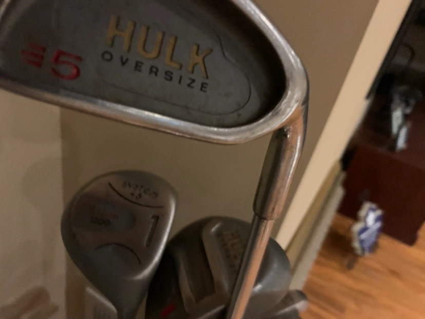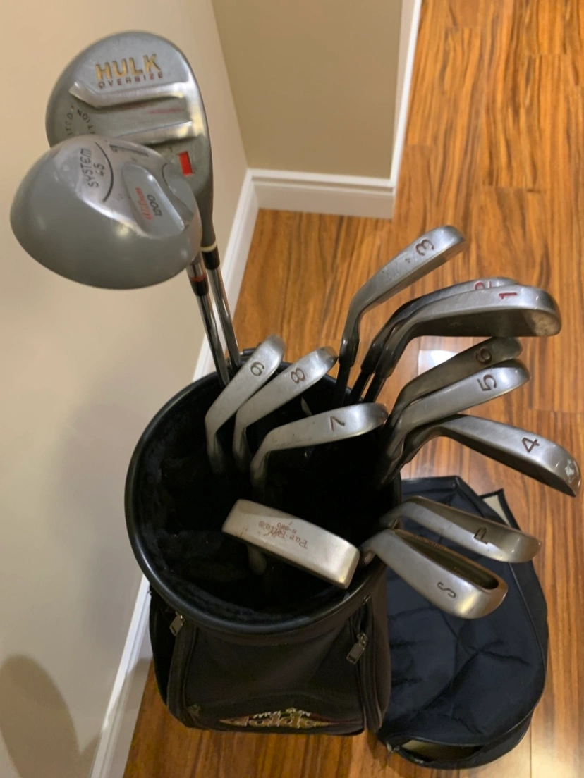 Full set of golf clubs with the golf bag and cover. They are “Hulk Oversized” clubs.