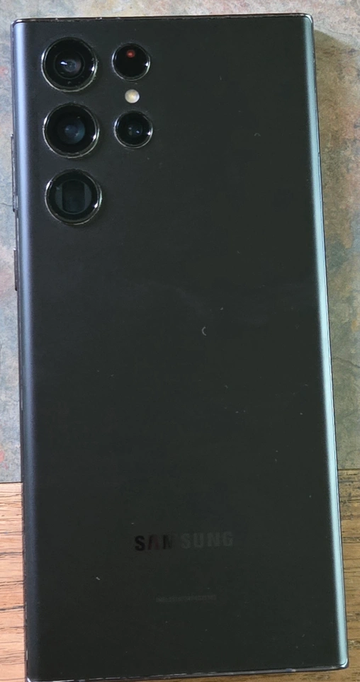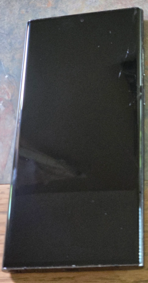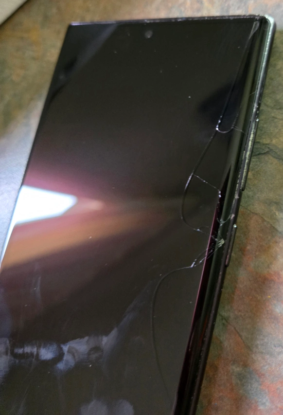 Black Samsung Galaxy Note 20 Ultra. The phone is in good condition. It has a cracked screen and a small scratch on the back. It is still functional and can be used with a screen protector. storage is 256 gb.