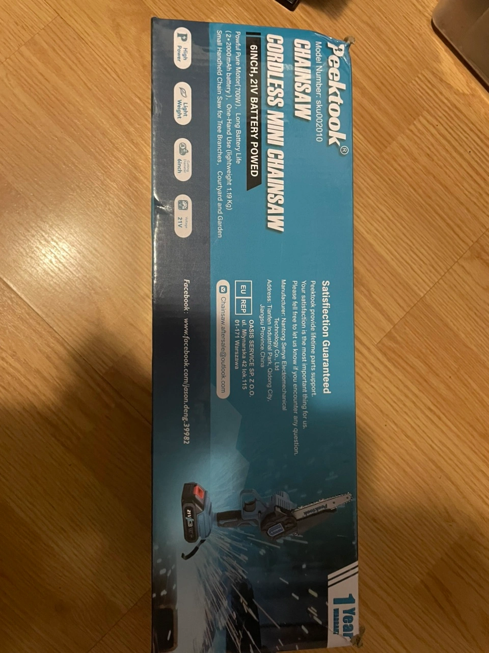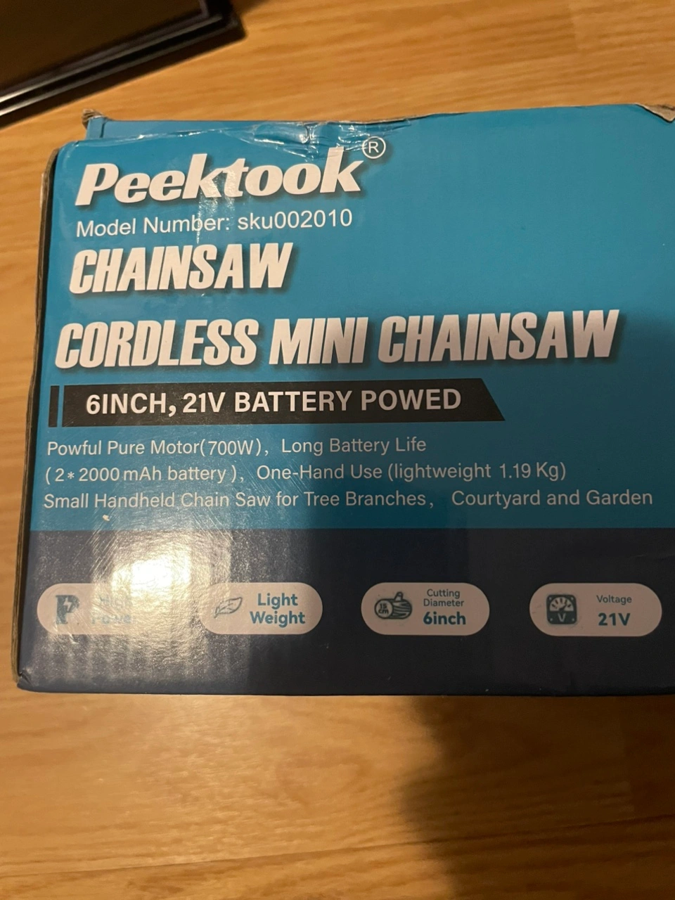 240Brand new - in the box. Never used. 6 inch, 21V Battery Powered Chainsaw. Lightweight and easy to use for branches, yard work, and more!