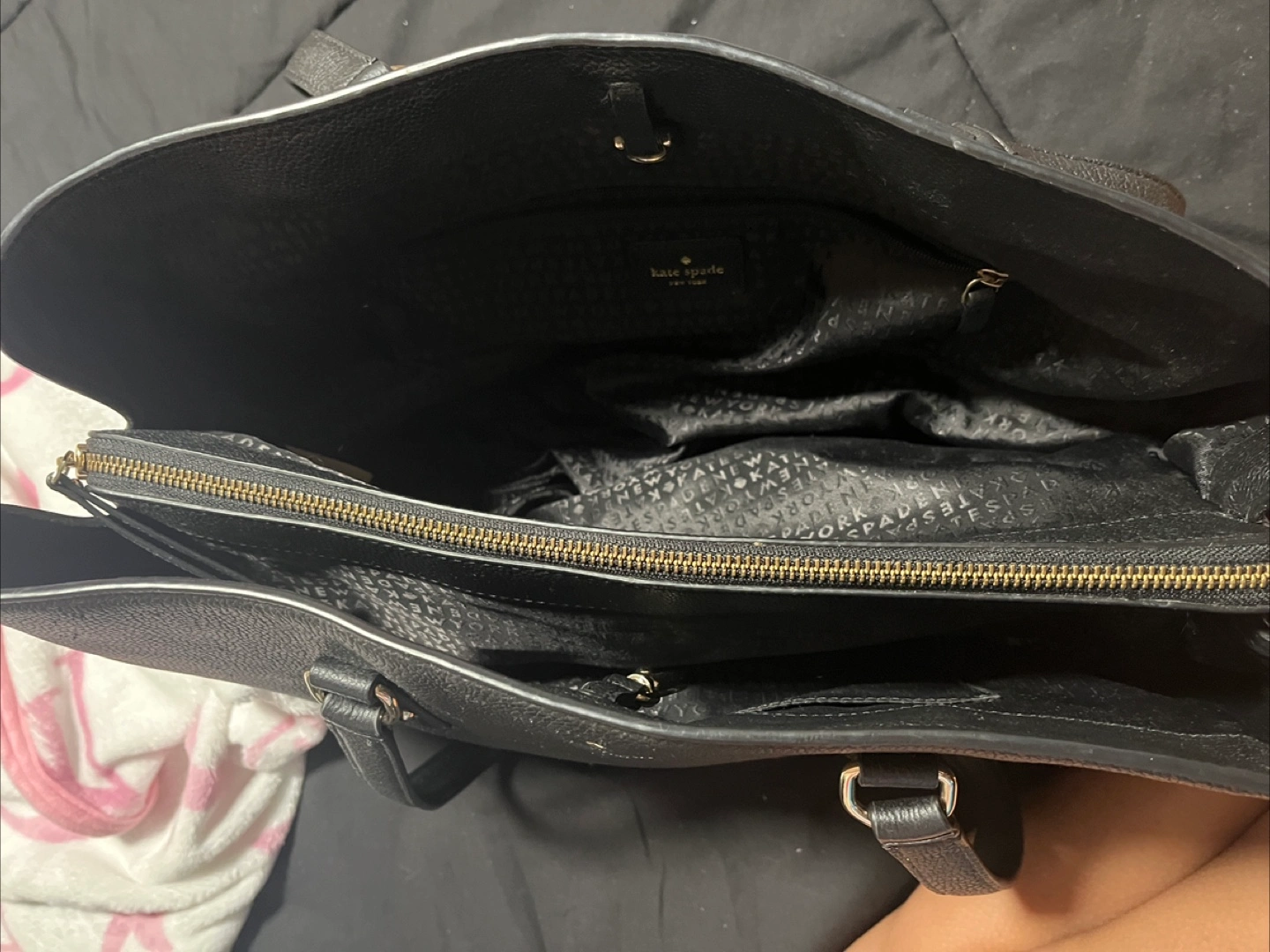 Selling a Kate Spade black tote bag. It's in good condition and has a lot of space inside. Perfect for carrying your essentials!
