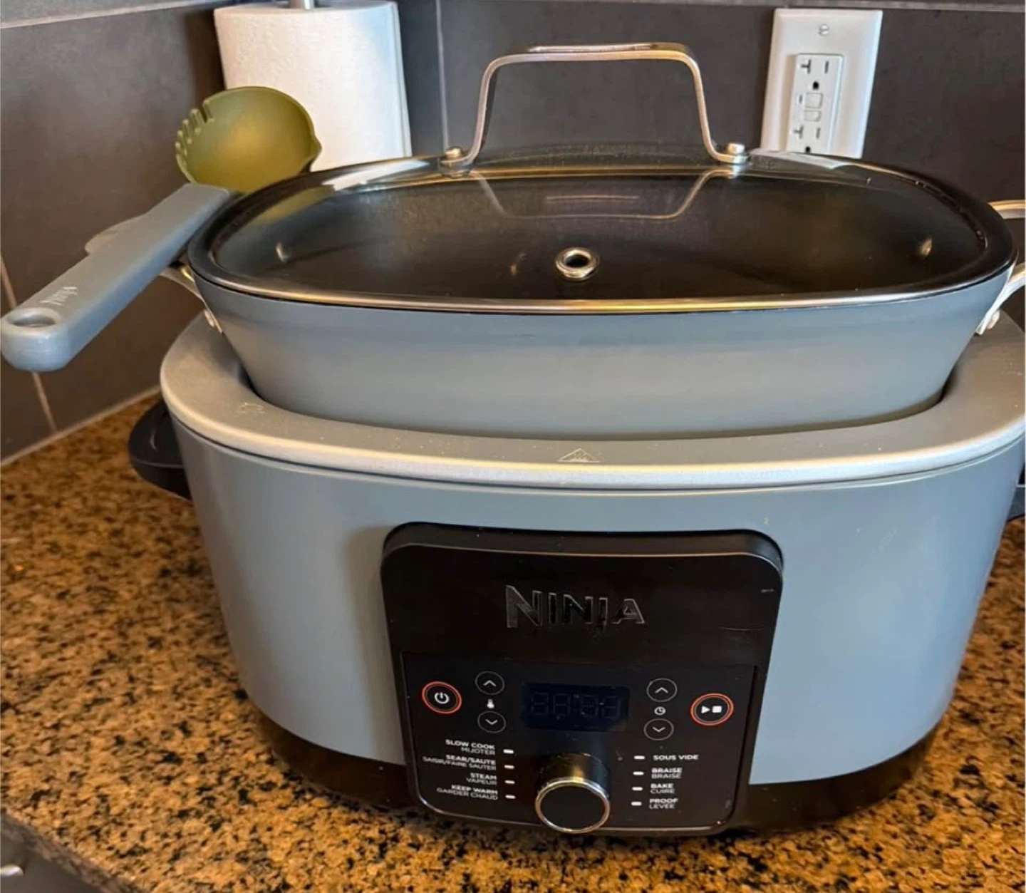 This is a Ninja Foodi multi-cooker. It has functions for slow cook, sear/saute, steam, and keep warm. It also includes sous vide, bake, and proof settings.