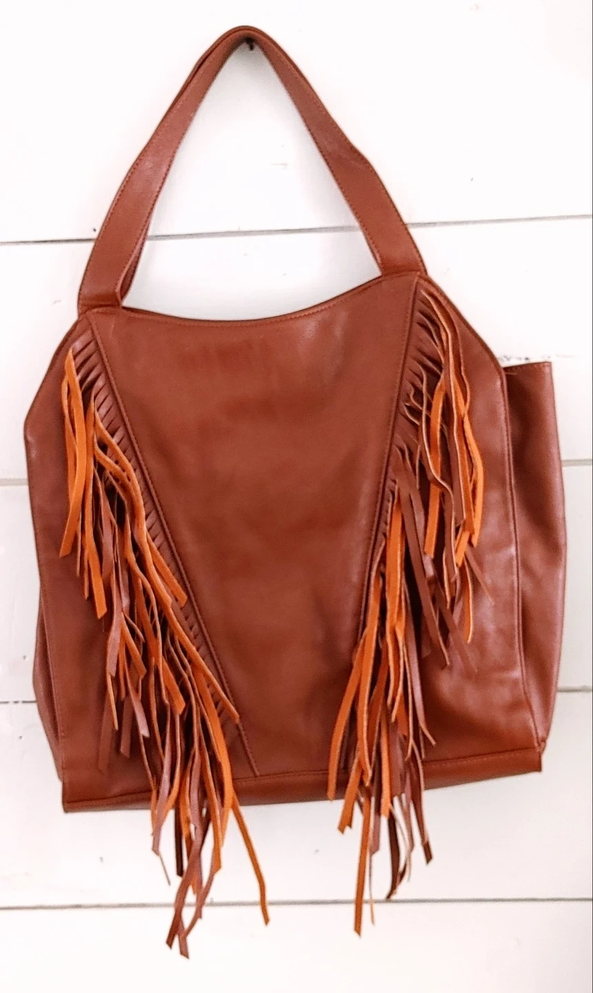 Brown Kensie faux leather tote bag/purse with fringe detailing. Excellent condition. Like new. No rips or stains. Zippers and snaps working perfectly. Thoroughly cleaned and disinfected. Smoke free home pick up Mt Brydges cash only.