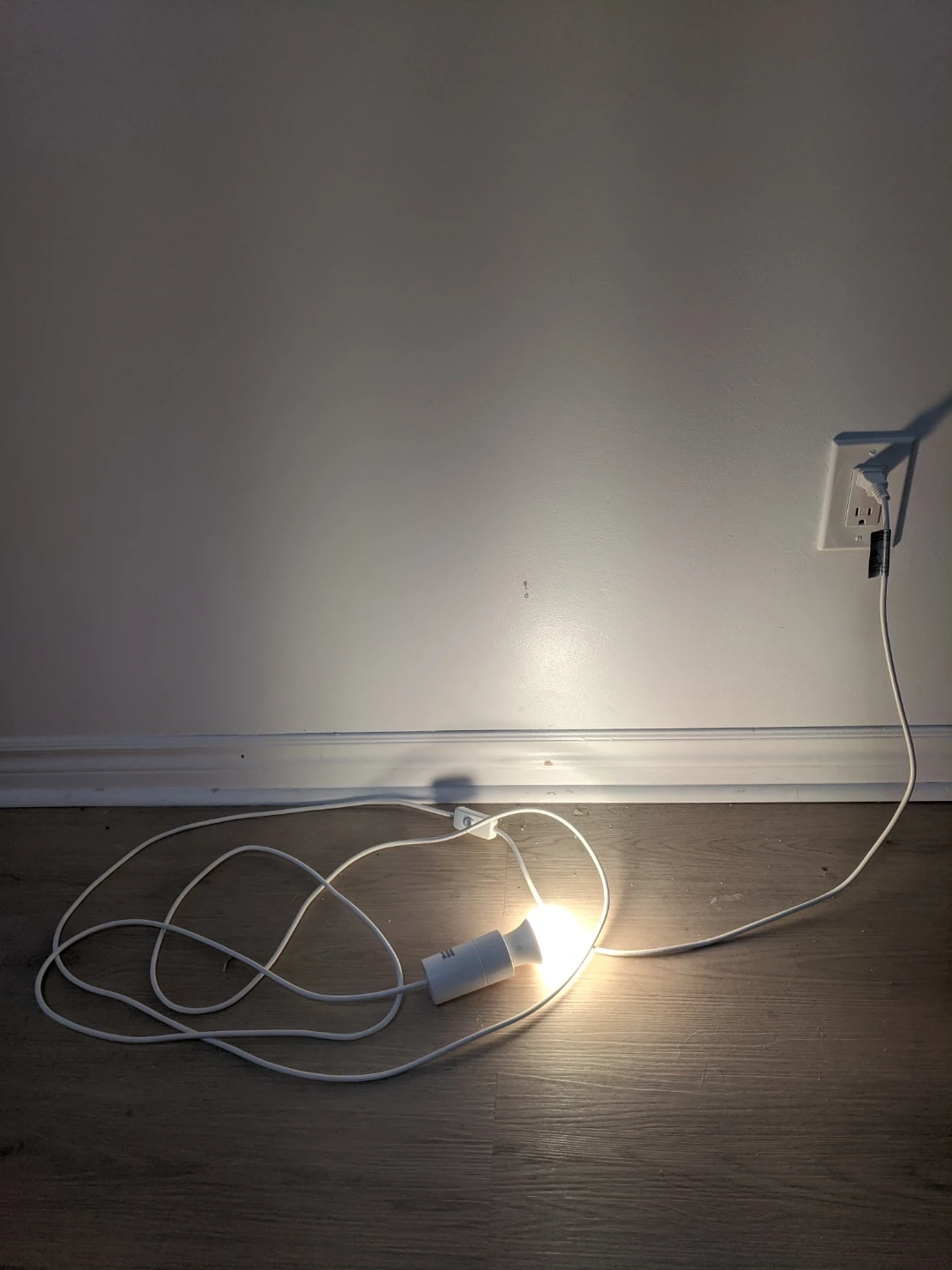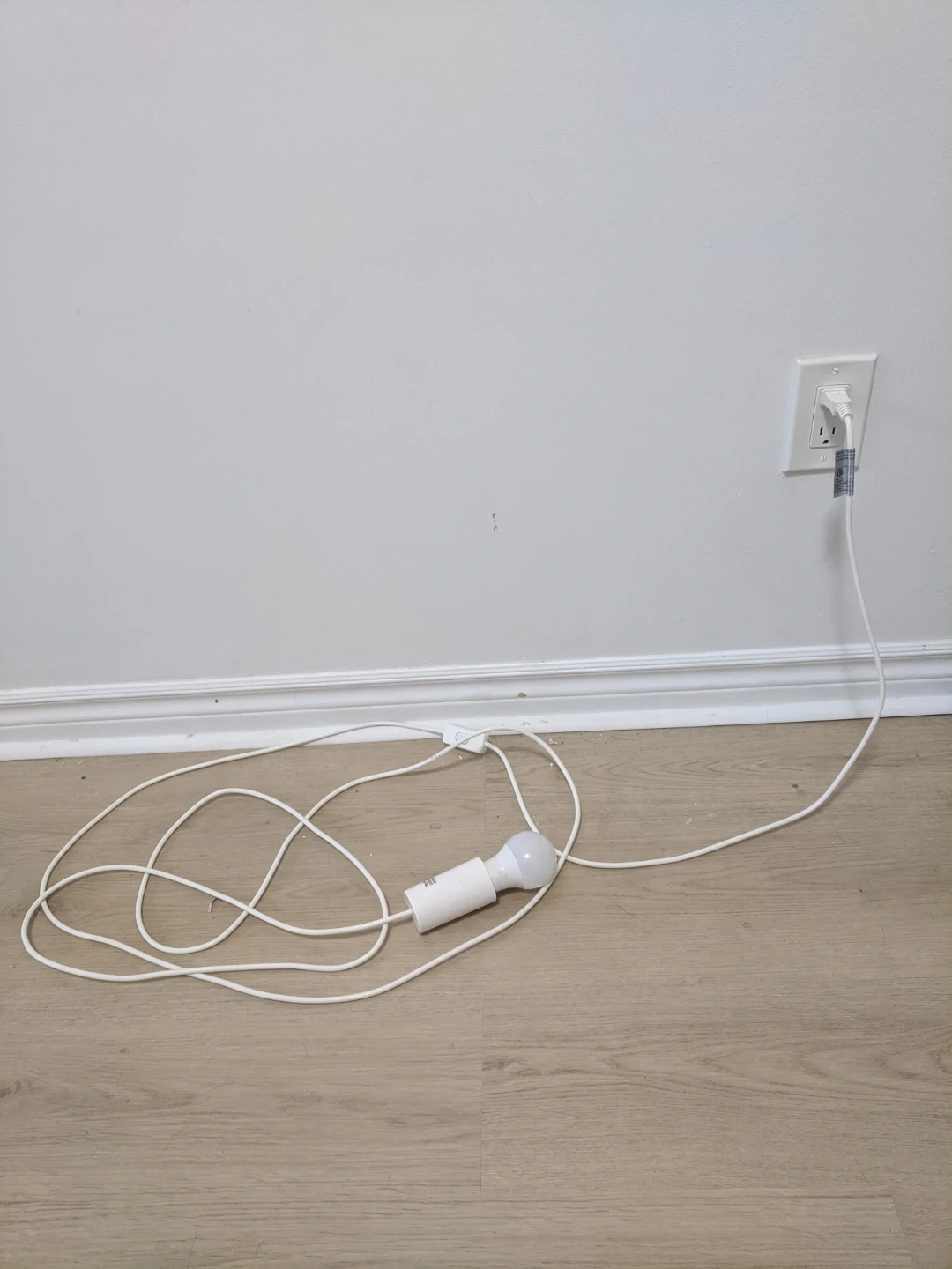 This is a white pendant light cord with an included LED bulb. It's rated for 120V AC, 60Hz and has a maximum wattage of 22W. The cord features an in-line on/off switch. Length is 95". This would be useful for temporary lighting needs or DIY projects. Pick up at 195 Merton Street Toronto or pick up at subway station Davisvill. And I can deliver it to your house but you need to pay me another $3. Thanks.