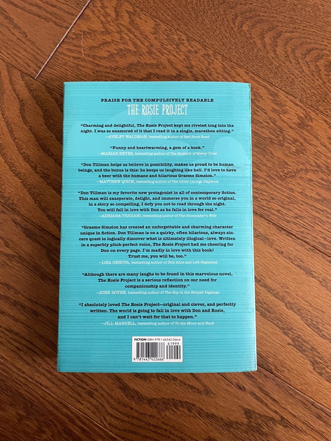 Softcover copy of "The Rosie Project," a novel by Graeme Simson. It's the first book in the series.