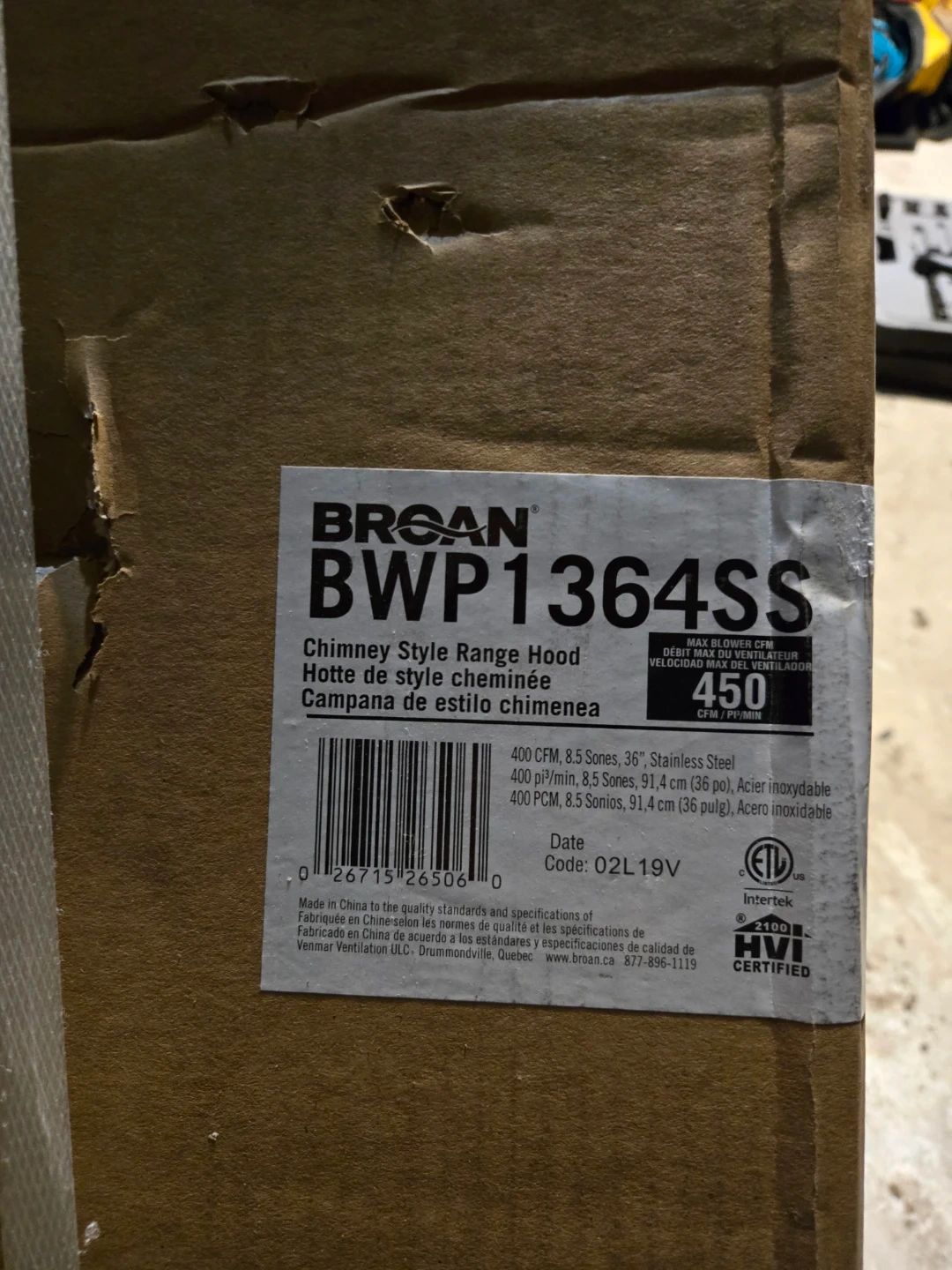 Selling a Broan BWP1364SS Chimney Style Range Hood in stainless steel! It's new and comes with the original box. This hood features: