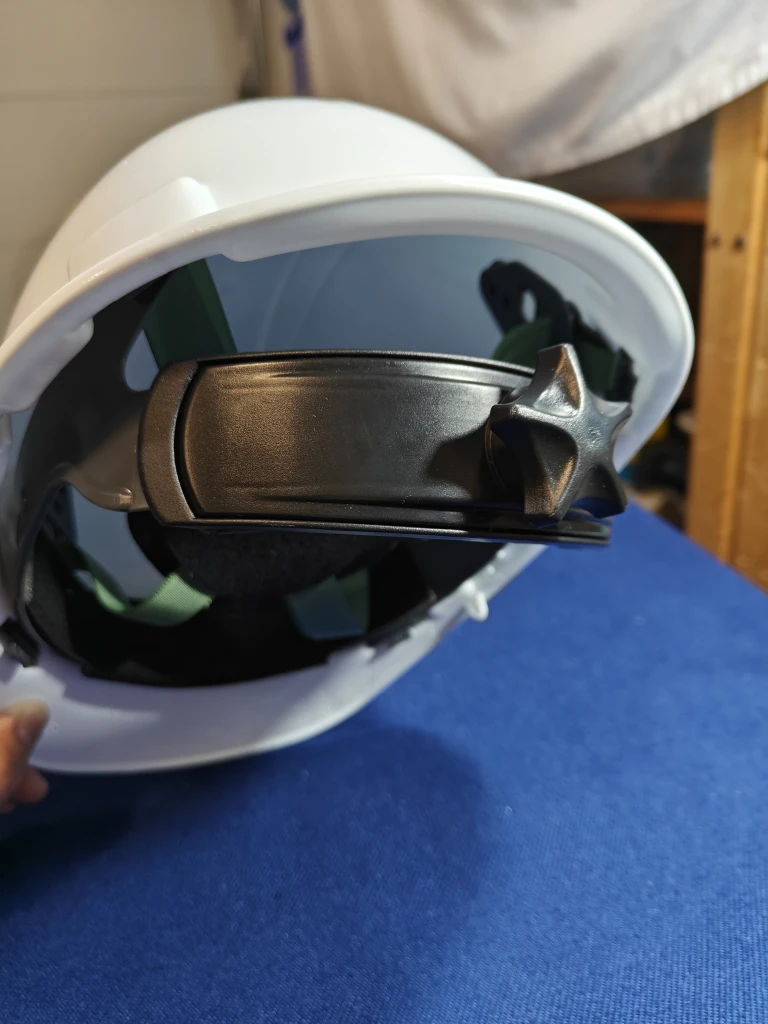 Selling a white hard hat. It's in great shape and ready for use on any construction site or job requiring head protection. It appears to be a standard size with an adjustable inner suspension for a comfortable fit.